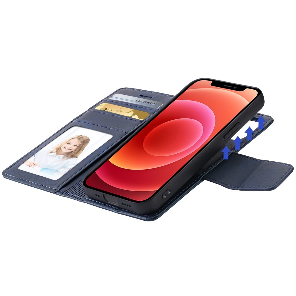 This case features a two-in-one design with a PU leather wallet case and a detachable leather coated TPU back shell, which can be attached together by magnetic snap fastener. High quality materials with exquisite workmanship ensure an elegant look and comfortable hand feeling. Moreover, 2 card slots, 1 photo slot and 1 cash compartment inside allow you to carry around your essential ID, credit cards and cash with your phone without having to take an extra heavy wallet.