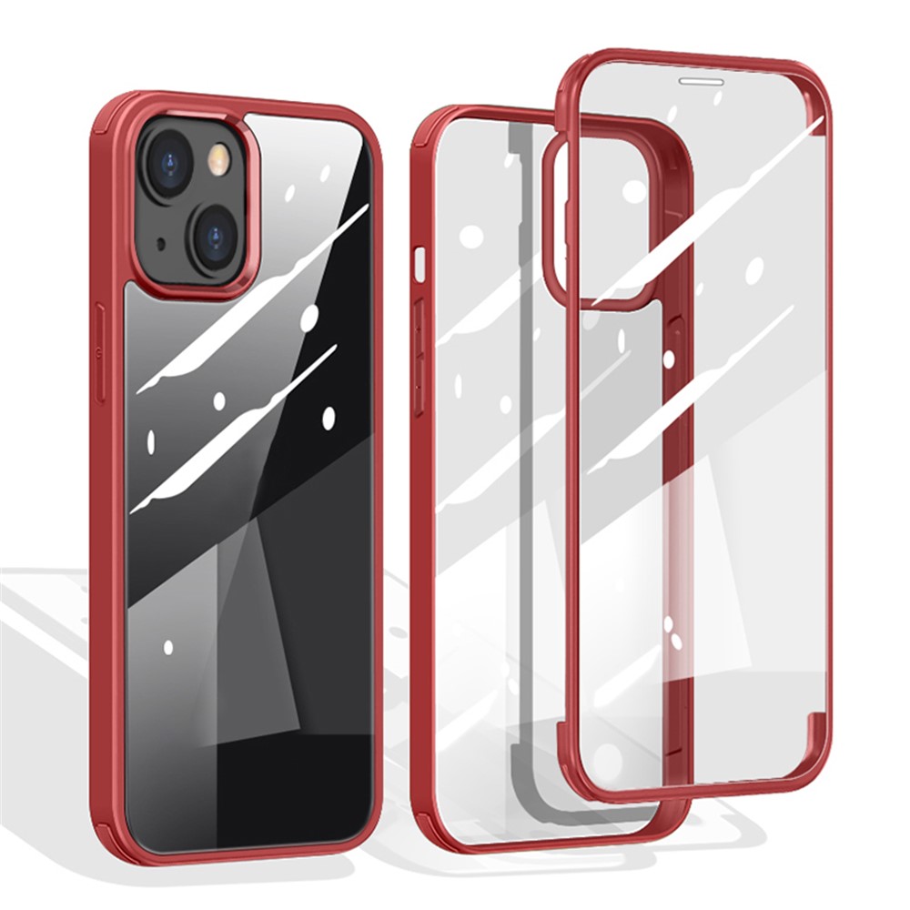 Hard Double-sided Tempered Glass Phone Case Full Protection Phone Covering with TPU Edge for iPhone 13 mini 5.4 inch - Red
