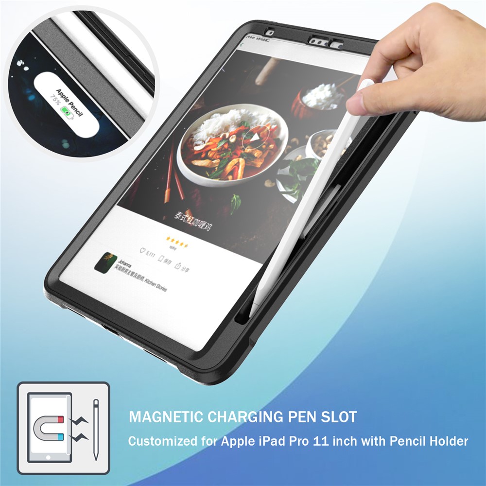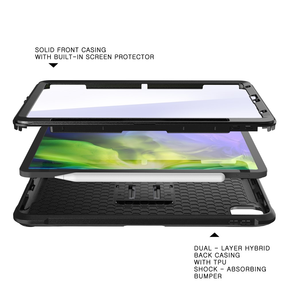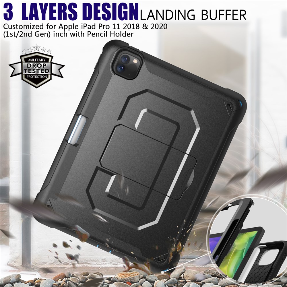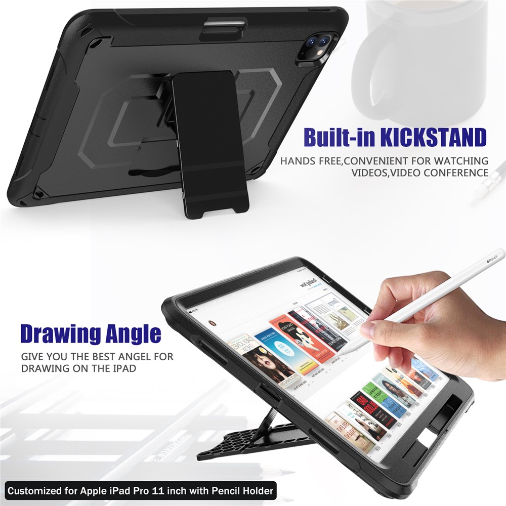 Heavy Duty Anti-drop PC + TPU Hybrid Protective Case with Kickstand and Pen Slot for iPad Pro 11-inch (2022) / (2021) / (2020) – Black