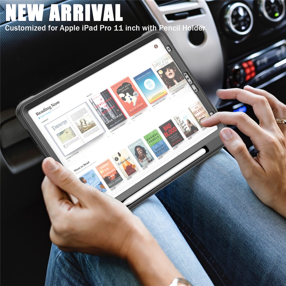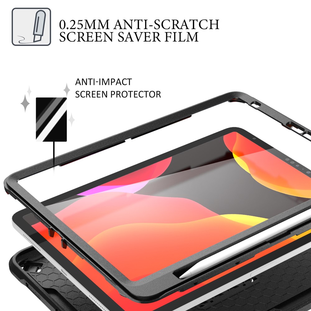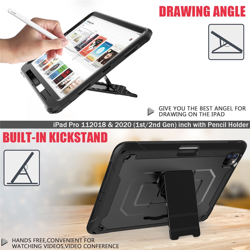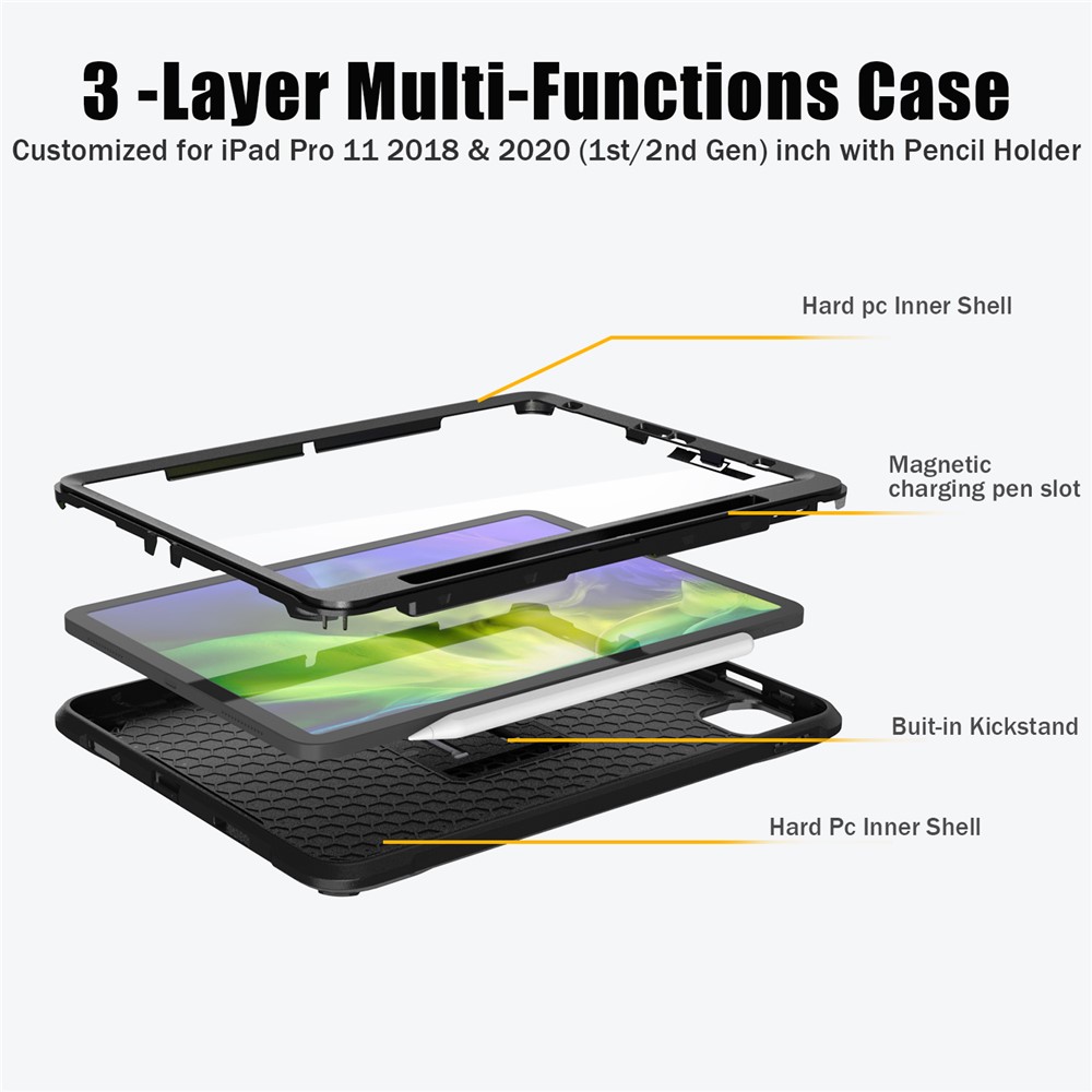 Heavy Duty Anti-drop PC + TPU Hybrid Protective Case with Kickstand and Pen Slot for iPad Pro 11-inch (2022) / (2021) / (2020) – Black
