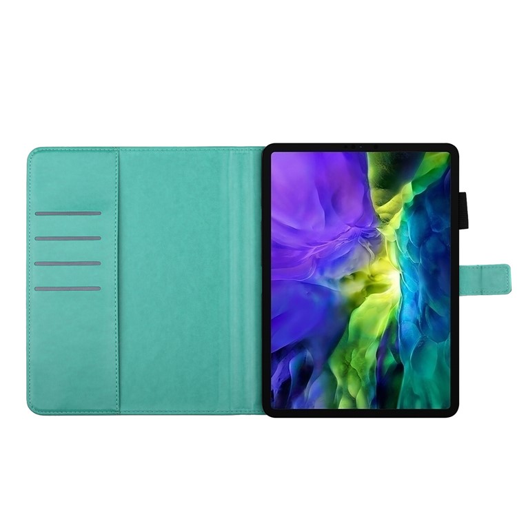 Imprinting Plum Blossom Pattern PU Leather + TPU Tablet Cover Protective Case with Stand Wallet for iPad Pro 11 (2022) / (2021) / (2020) / (2018) – Cyan