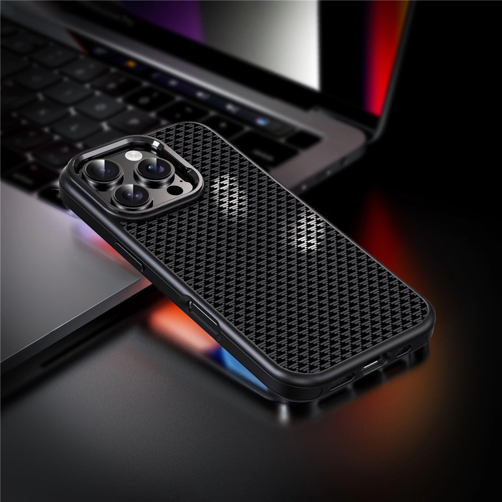 - Carbon Fiber Texture Premium carbon fiber twill pattern on the PC back delivers a sleek, modern aesthetic while enhancing durability and scratch resistance