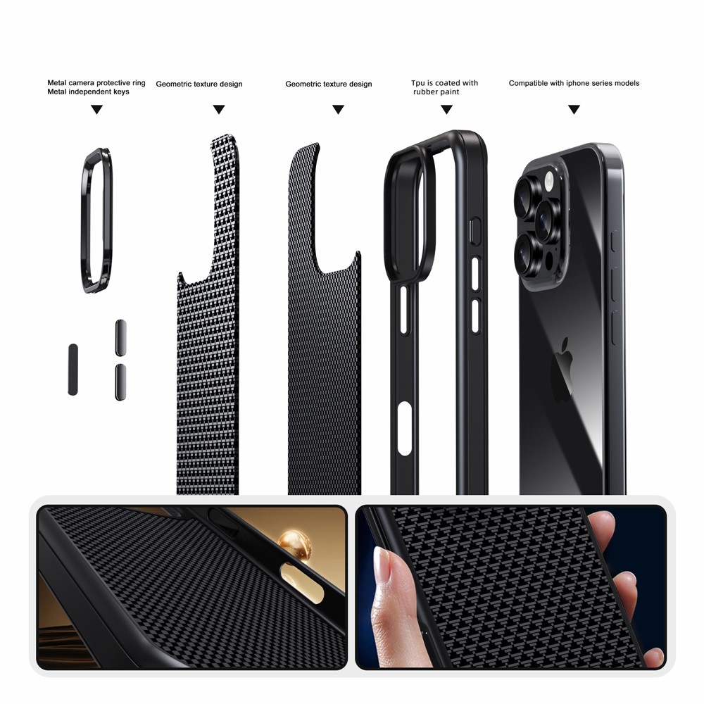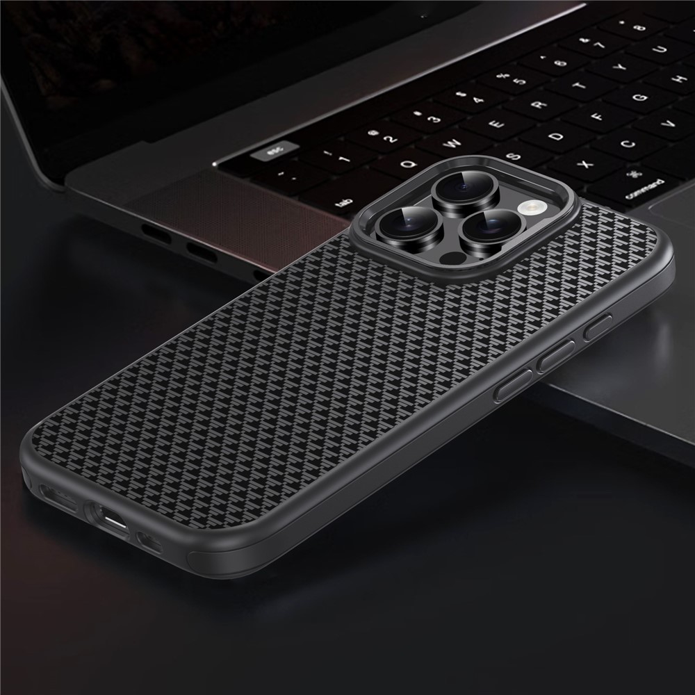- Carbon Fiber Texture Premium carbon fiber twill pattern on the PC back delivers a sleek, modern aesthetic while enhancing durability and scratch resistance