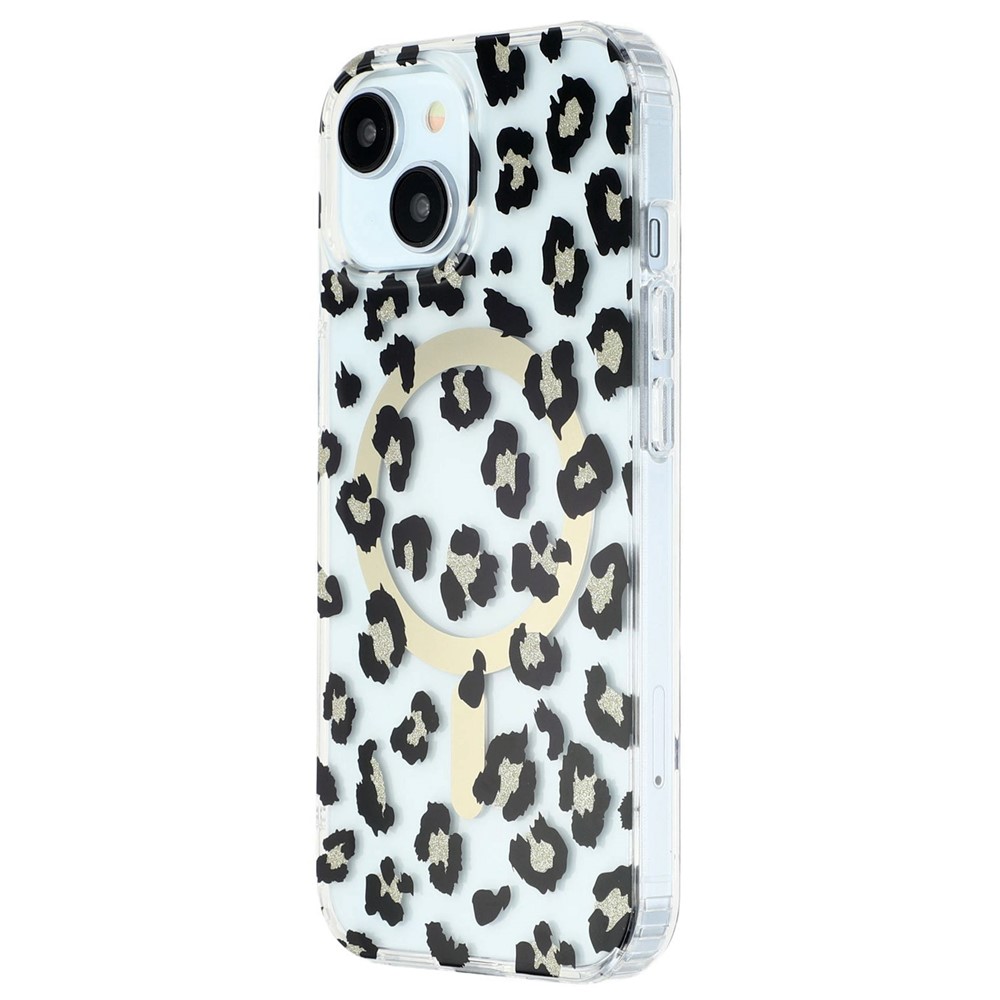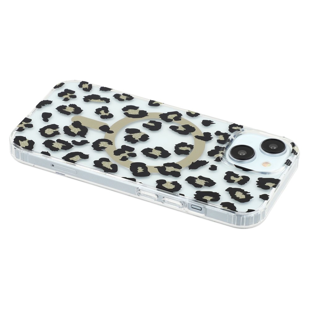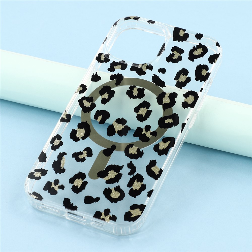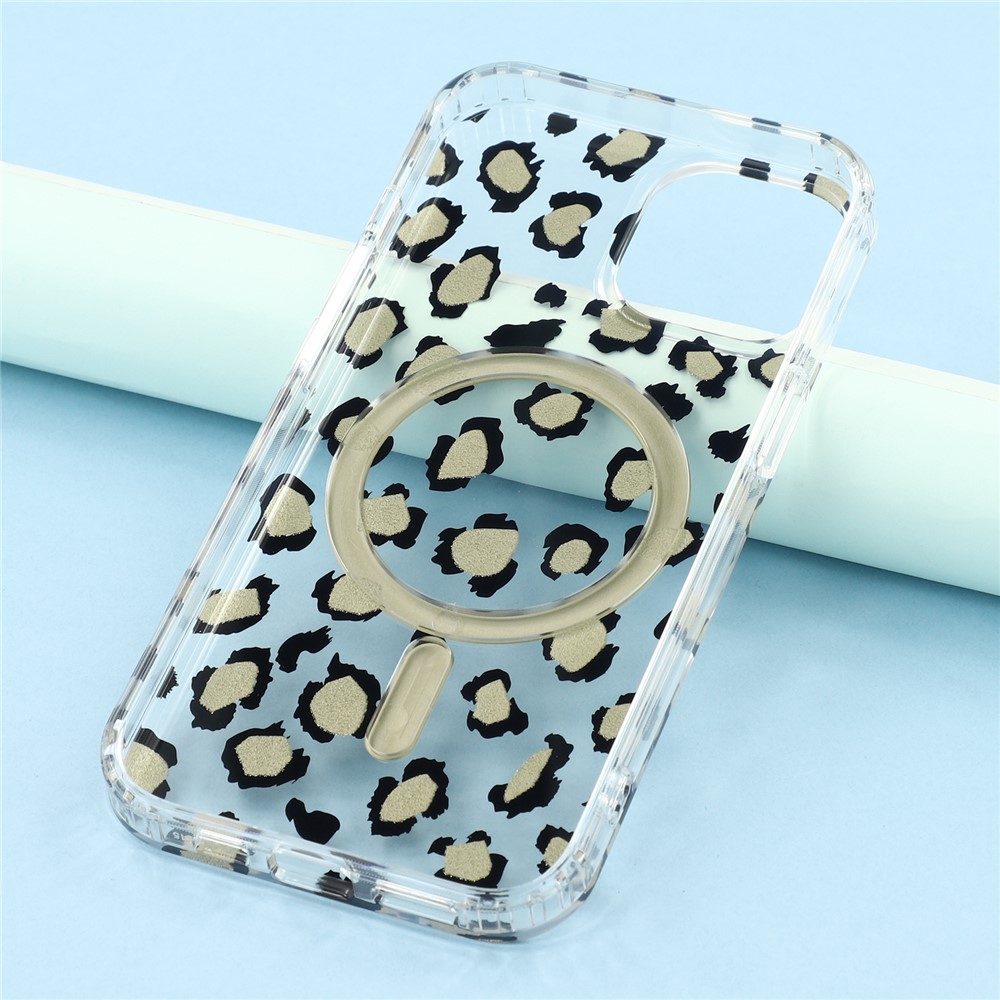 iPhone 15 Magnetic Case Leopard Print Design TPU PC Double Layer Electroplated Anti Yellow Shockproof Corner