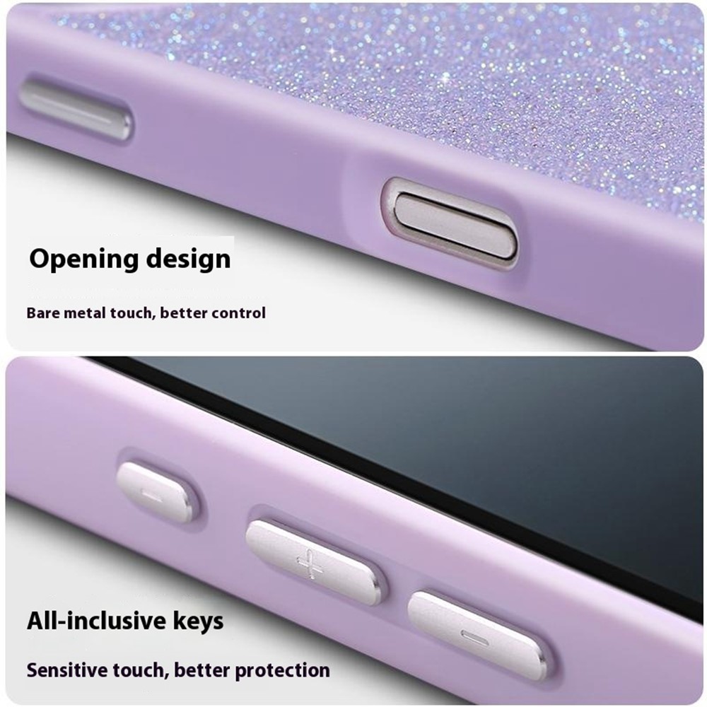 - Rhinestone Lens Frame Camera lens area is accented with a metallic frame inlaid with sparkling rhinestones, combining elegance with protective function
