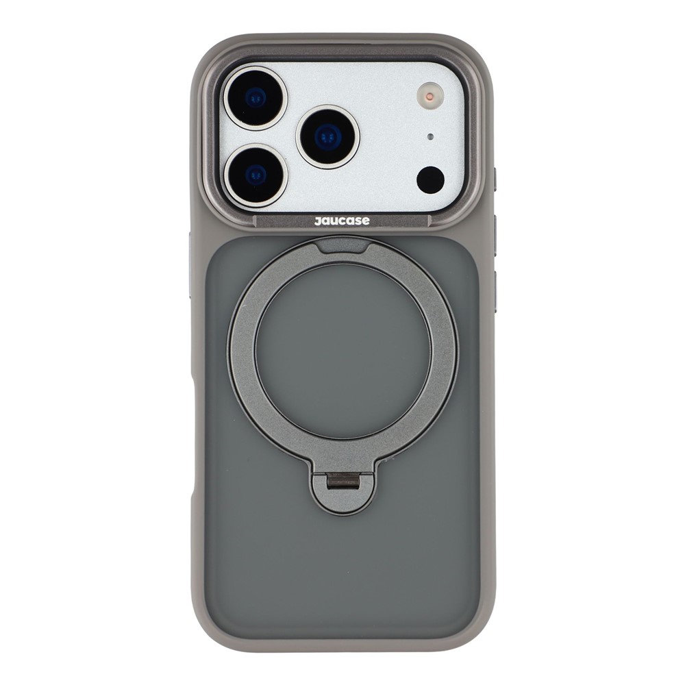 JAUCASE For iPhone 17 Pro Case Rotating Kickstand Skin-Touch Matte PC + TPU Phone Cover – Titanium Grey