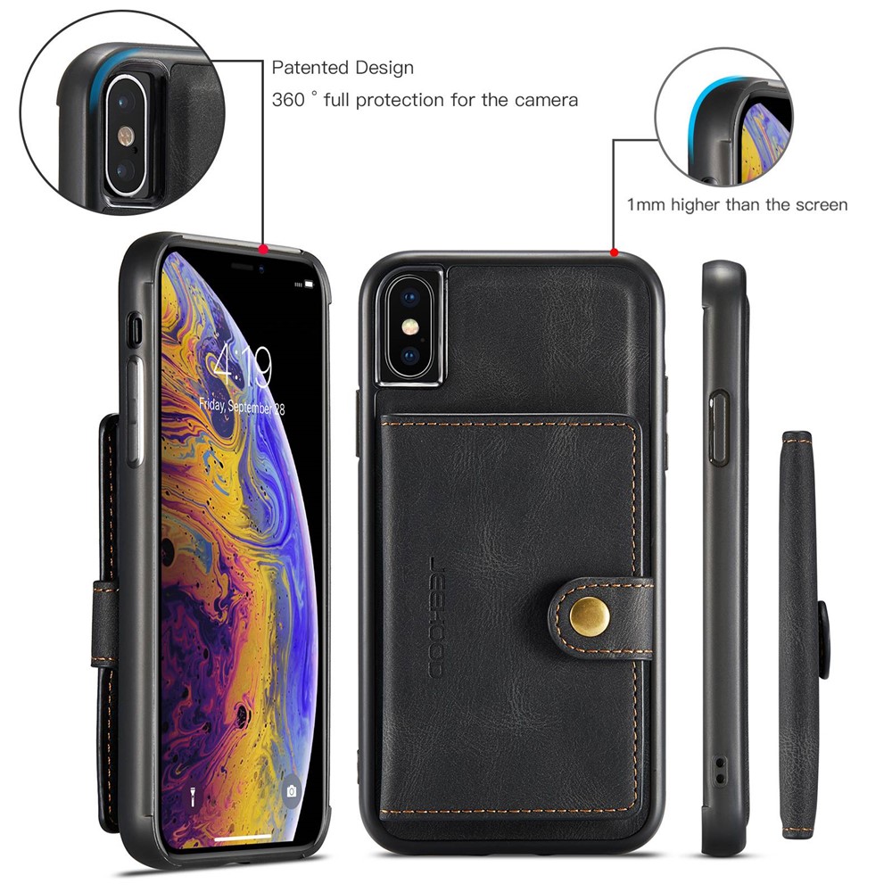 This case features a two-in-one design with a detachable leather wallet and a leather-coated TPU back case, which can be attached together by magnetism. The detachable leather wallet allows you to carry around your essential ID, credit cards and cash with your phone without having to take an extra heavy wallet.
