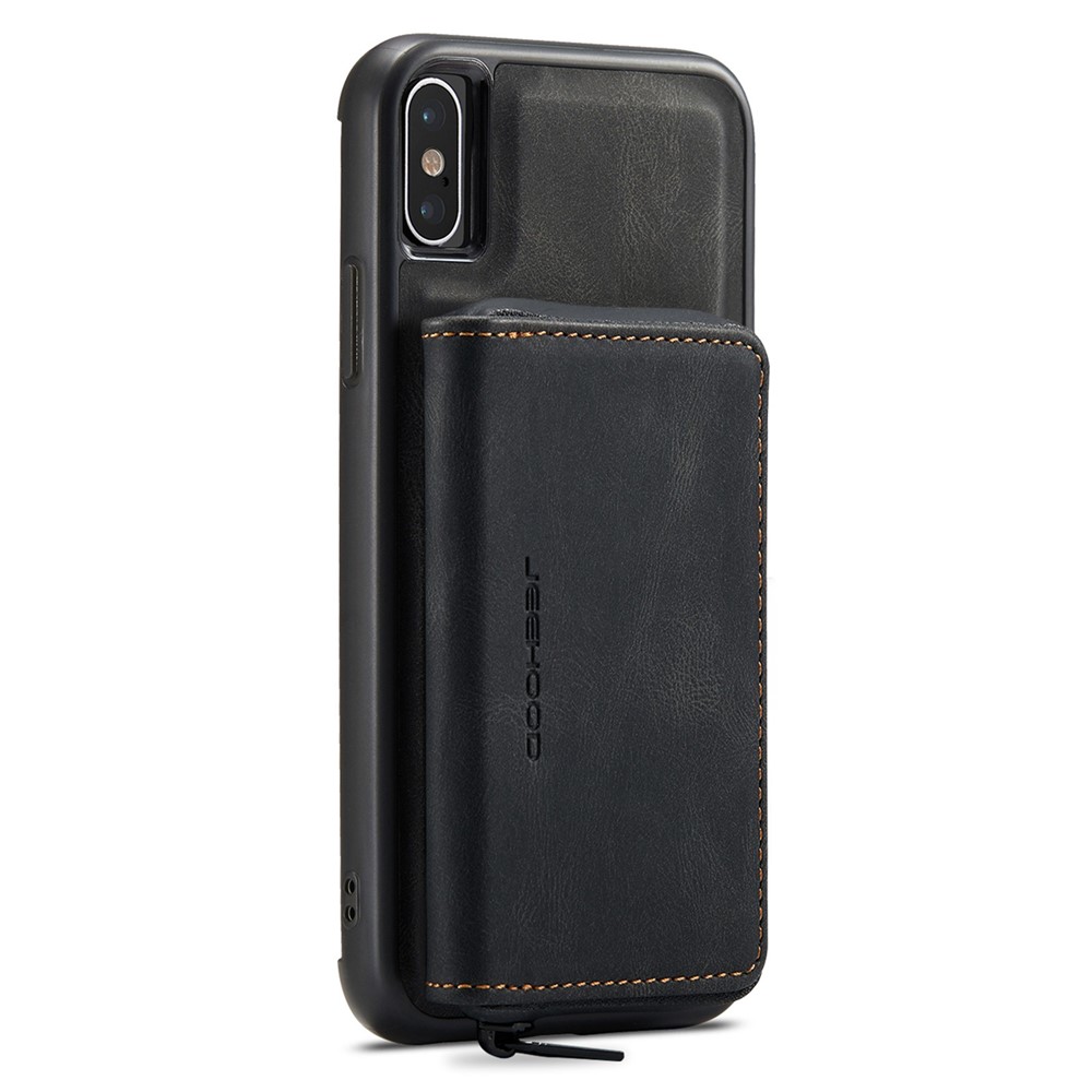 JEEHOOD For iPhone XS Max 6.5 inch Detachable Zipper Wallet Magnetic Absorption Cover Anti-drop Anti-scratch Leather Coated TPU Phone Case with Kickstand - Black $21.04