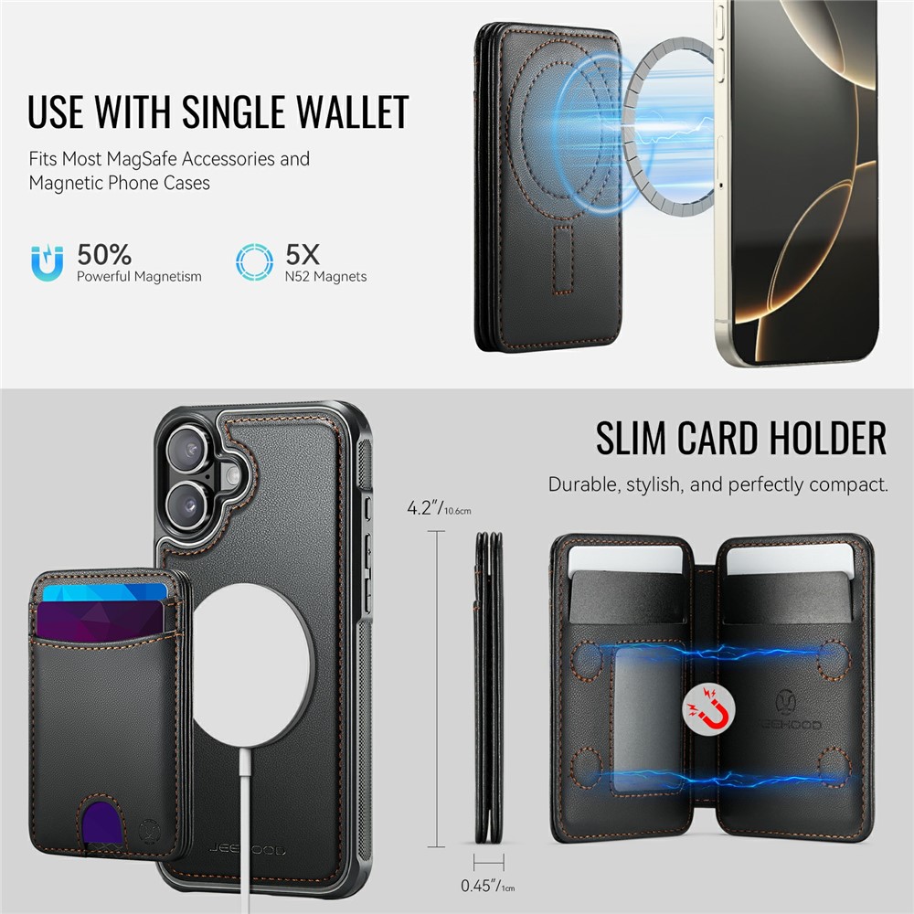 - Multi-Card Design Features 2 card slots on the front, and 4 additional card slots (1 photo slot + 3 card slots) inside for maximum organization.