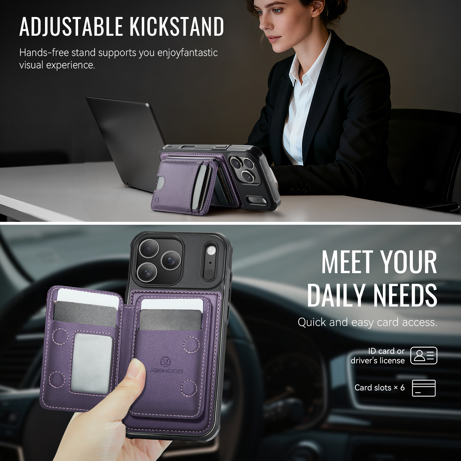- Adjustable Kickstand The card holder doubles as a kickstand, providing multiple viewing angles for hands-free entertainment or work.