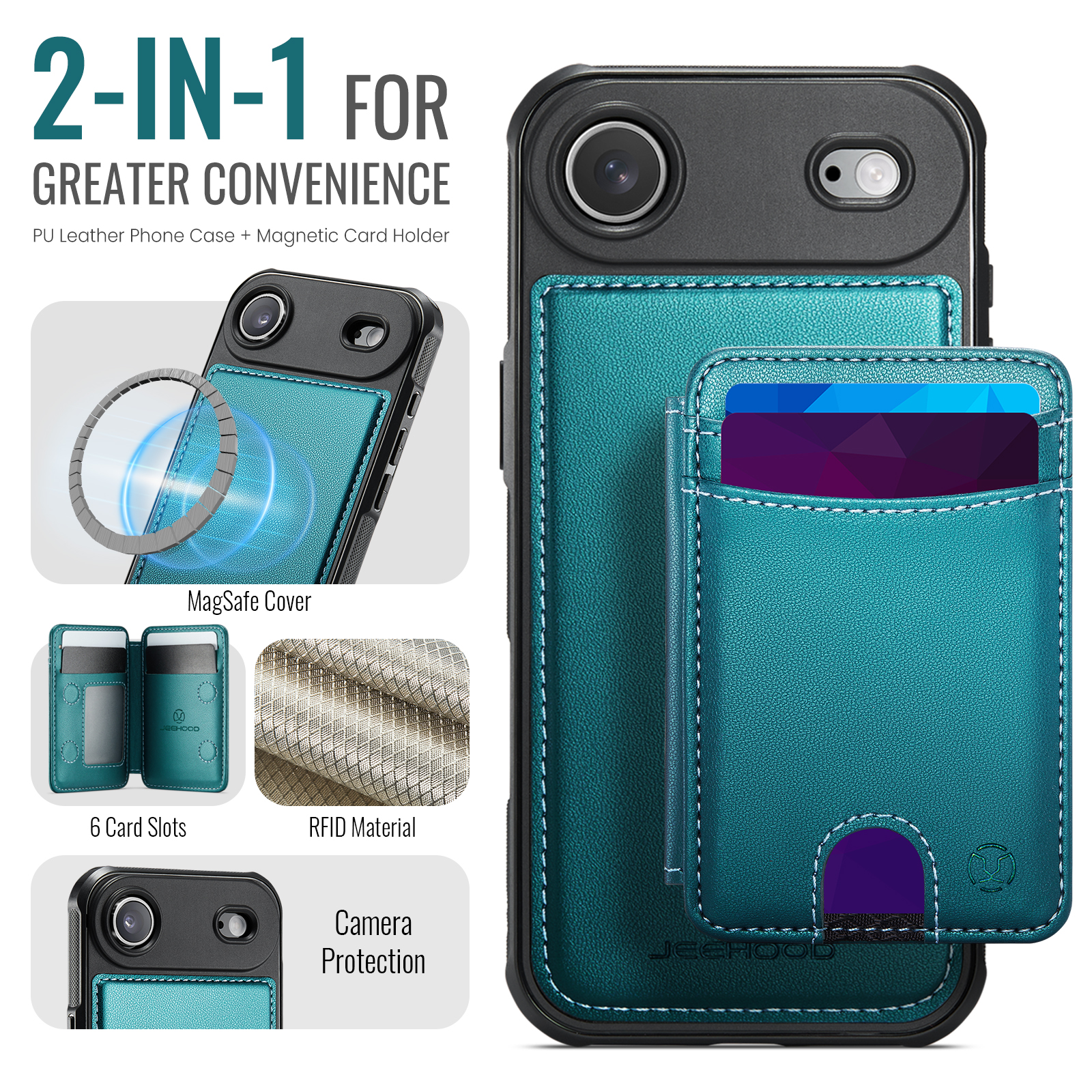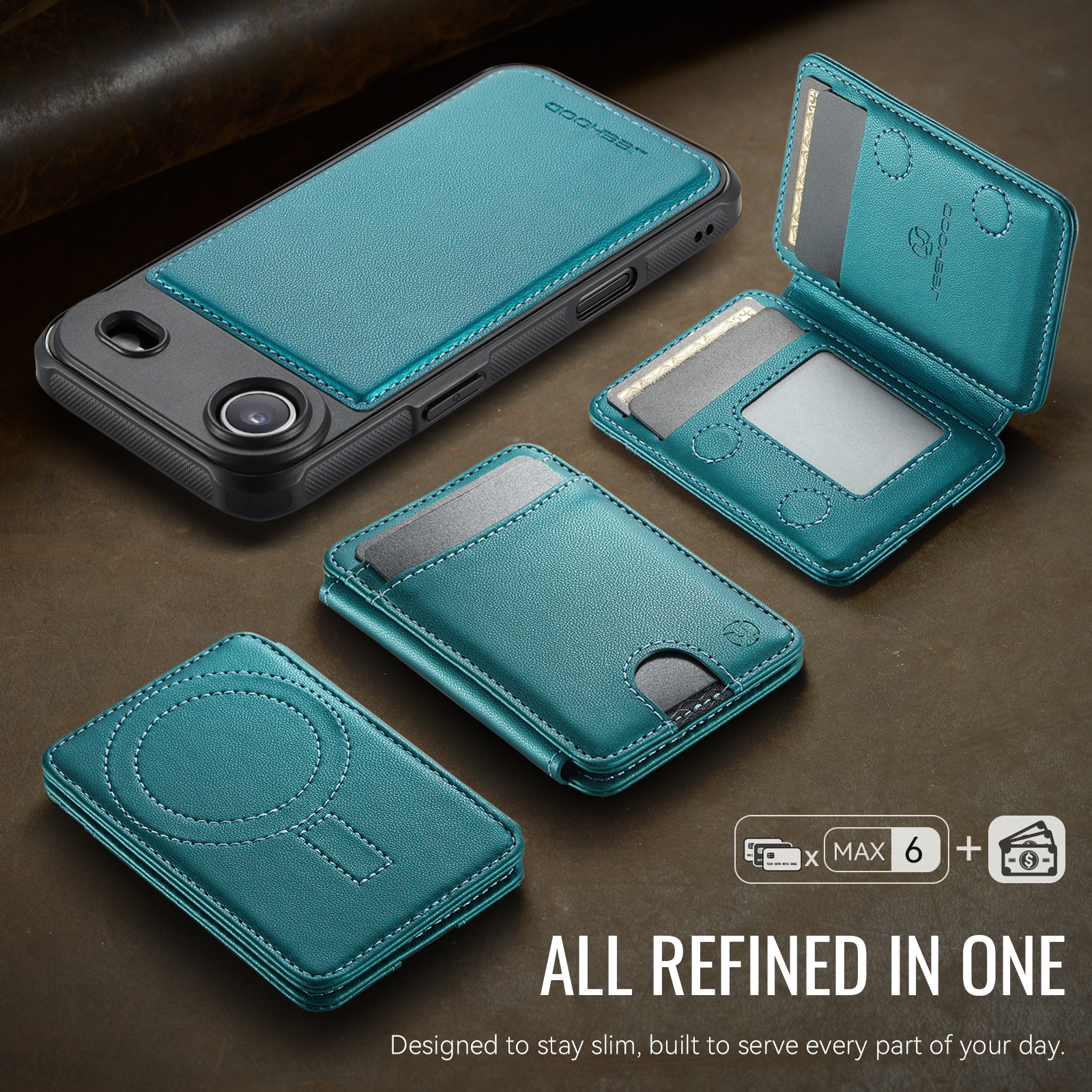 - Multi-Card Design Features 2 card slots on the front, and 4 additional card slots (1 photo slot + 3 card slots) inside for maximum organization.