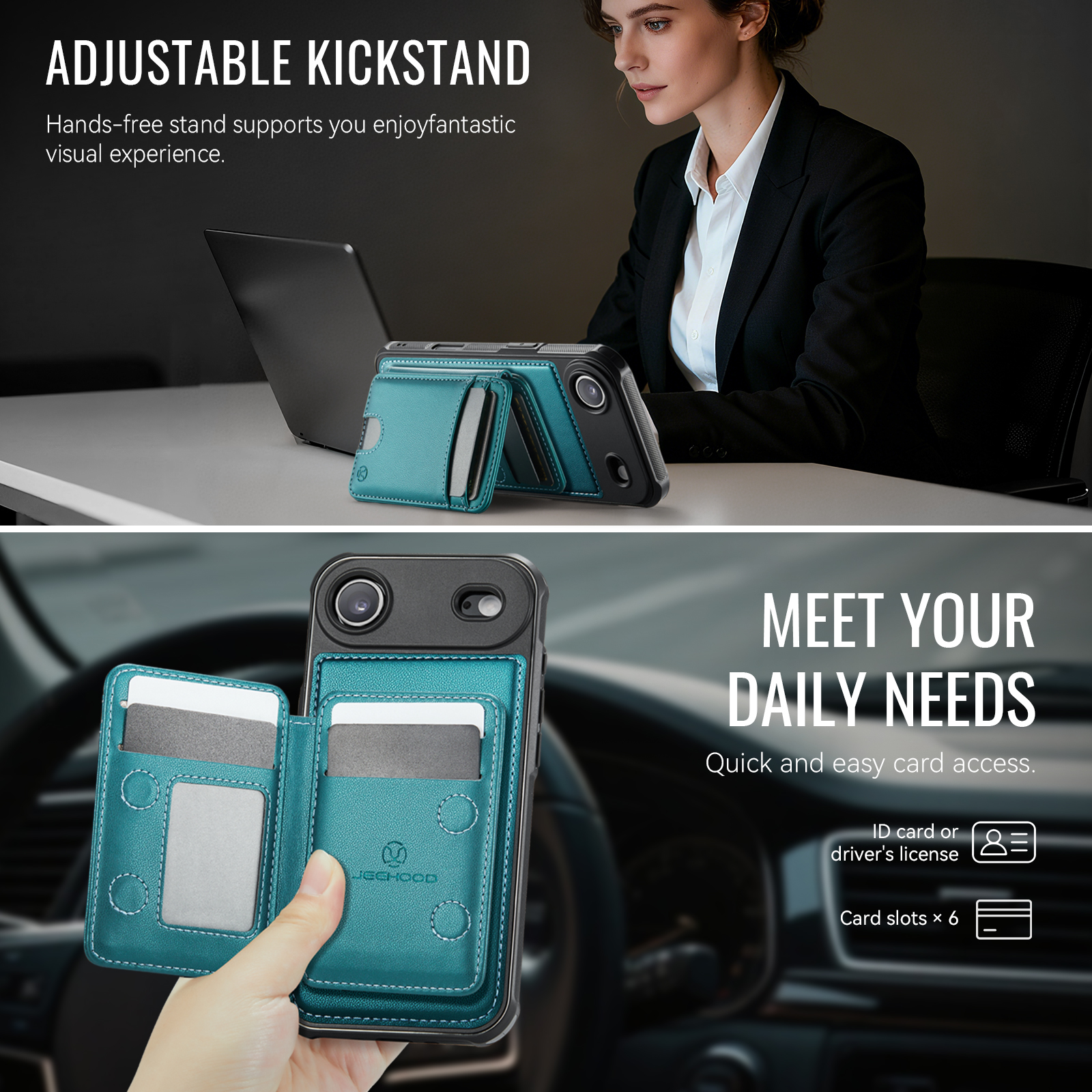 - Adjustable Kickstand The card holder doubles as a kickstand, providing multiple viewing angles for hands-free entertainment or work.