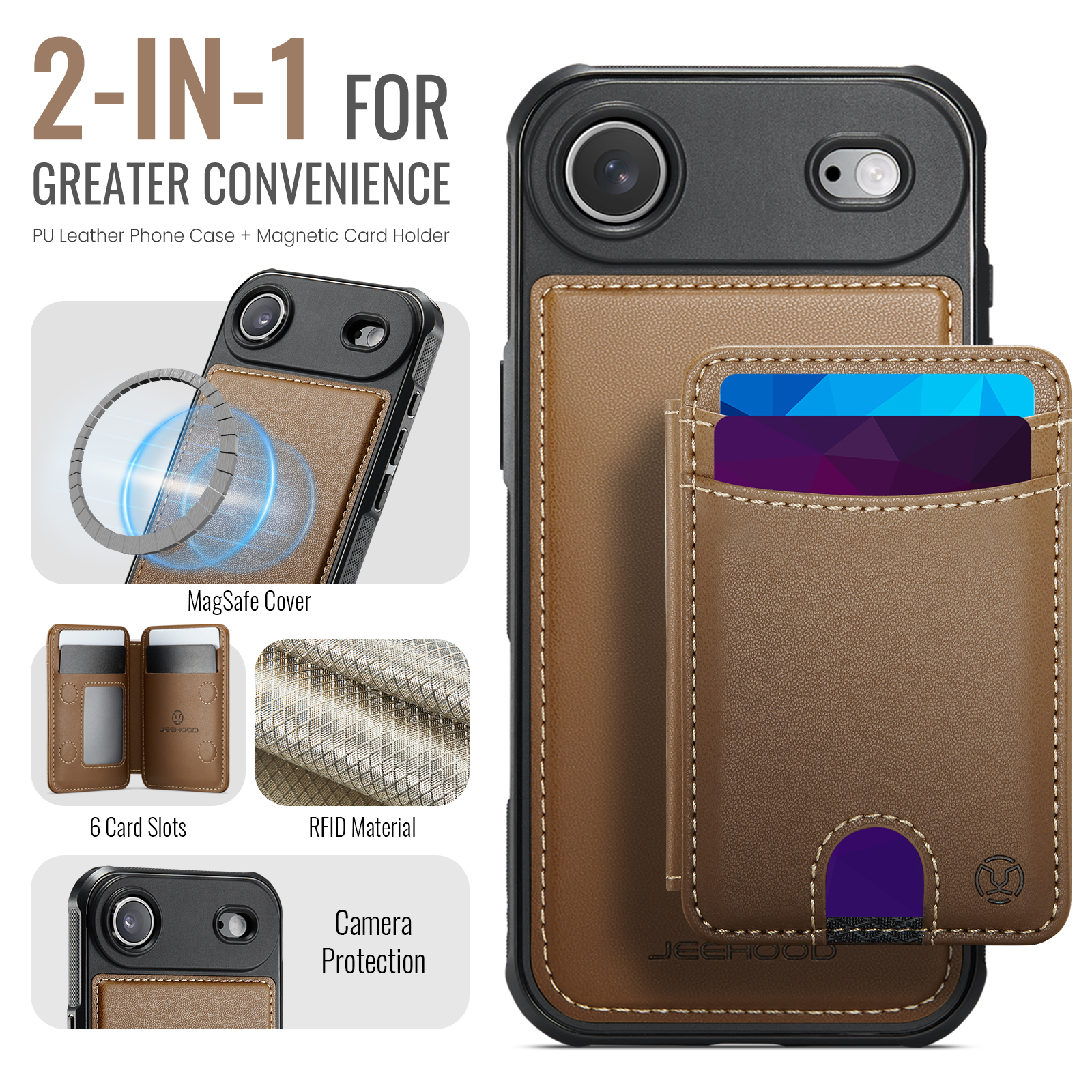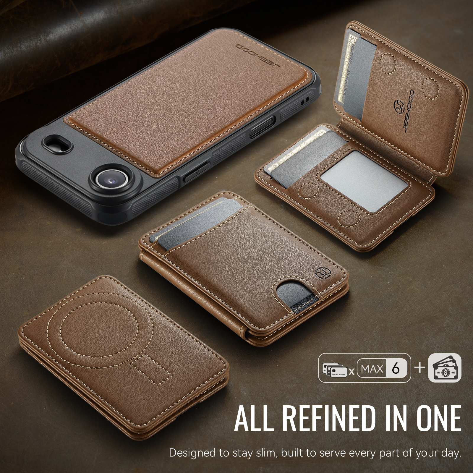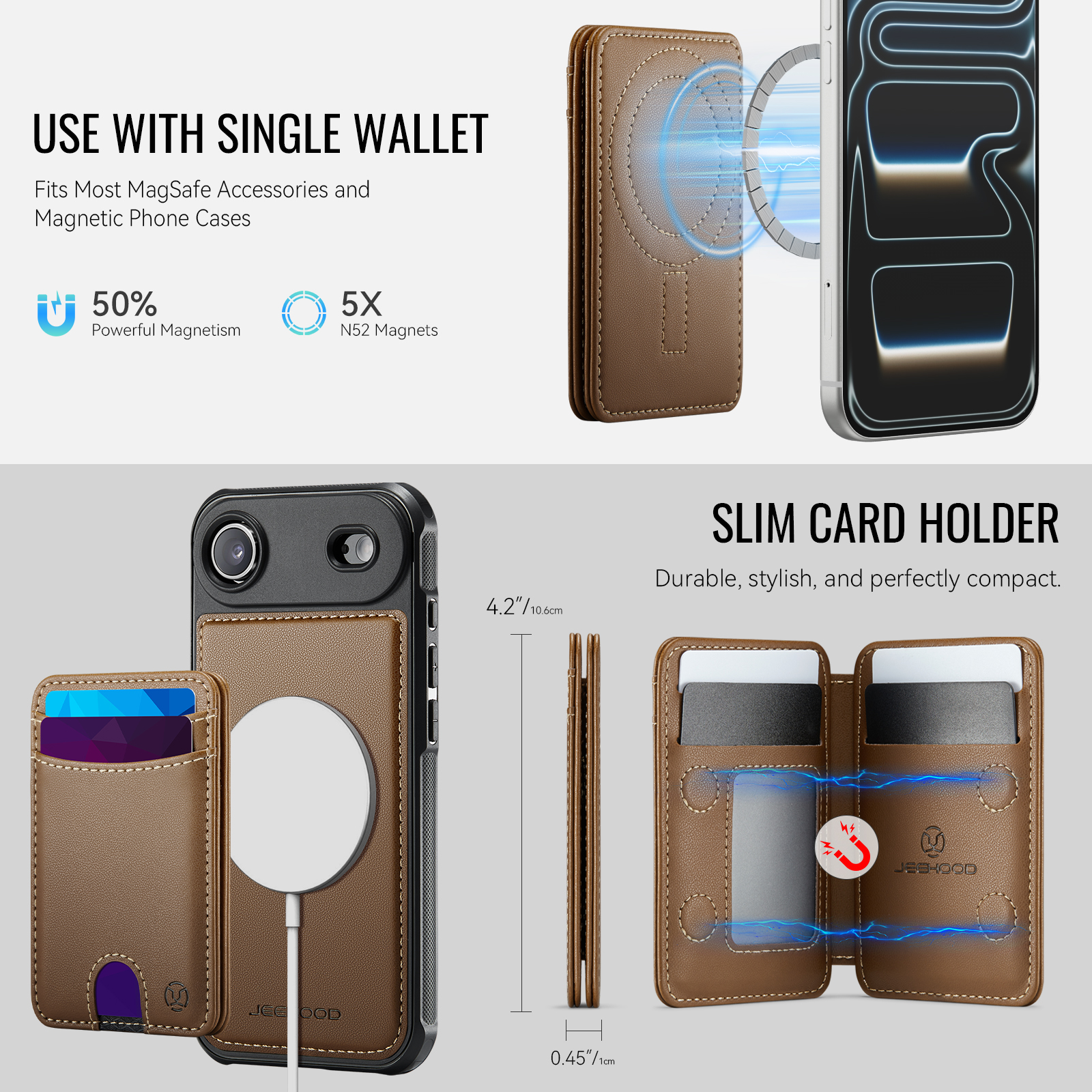 - Multi-Card Design Features 2 card slots on the front, and 4 additional card slots (1 photo slot + 3 card slots) inside for maximum organization.