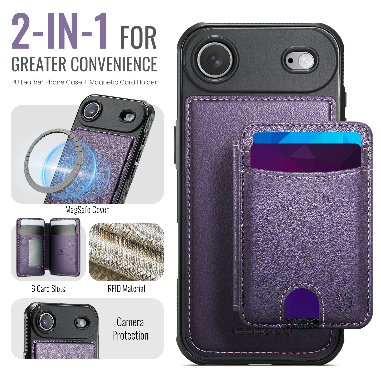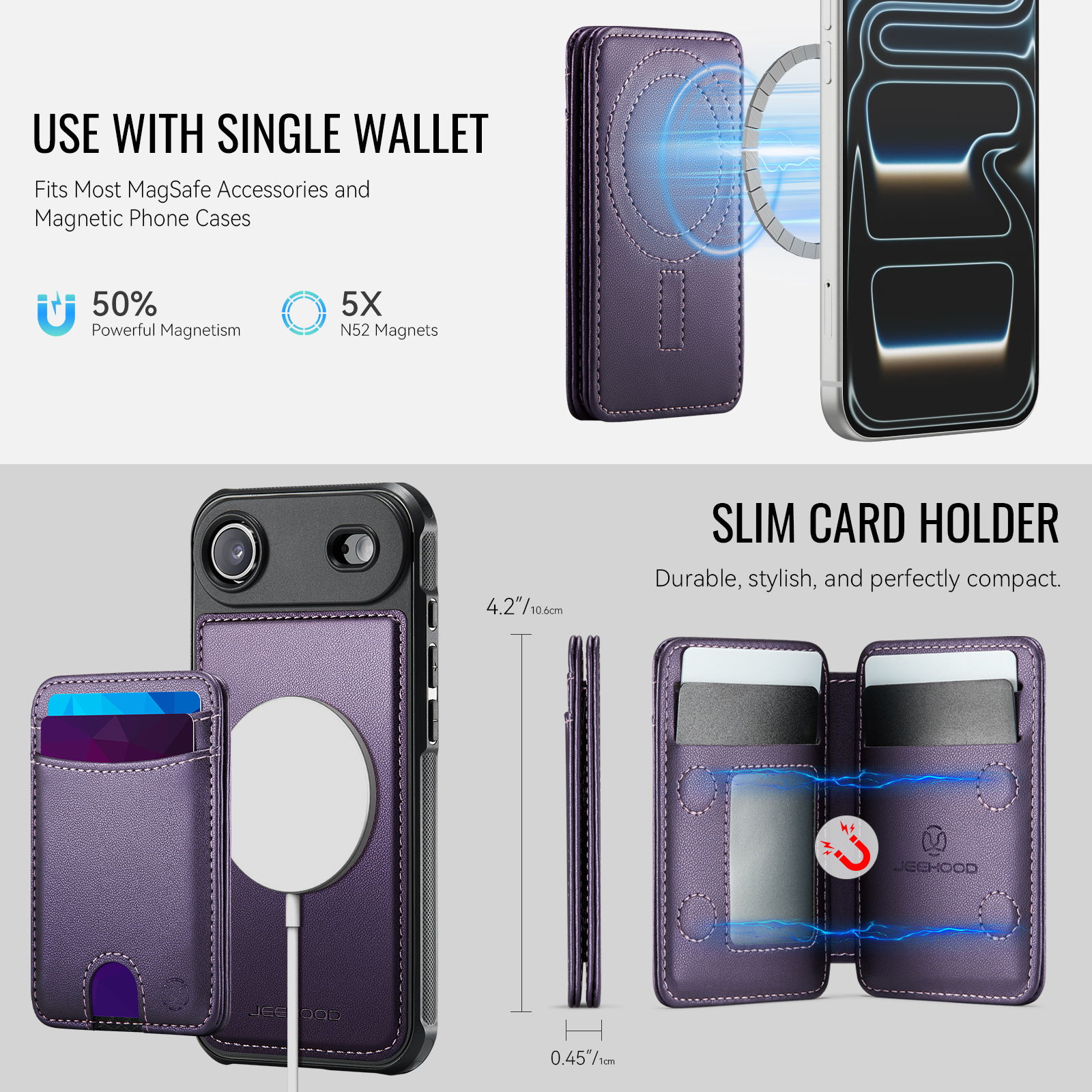 - Multi-Card Design Features 2 card slots on the front, and 4 additional card slots (1 photo slot + 3 card slots) inside for maximum organization.