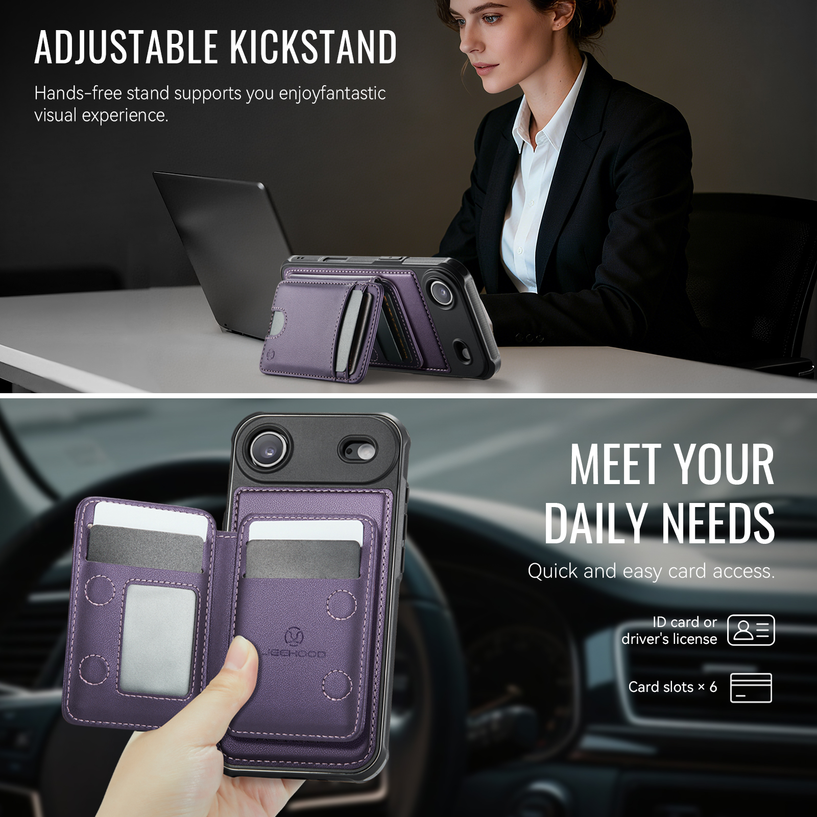 - Adjustable Kickstand The card holder doubles as a kickstand, providing multiple viewing angles for hands-free entertainment or work.