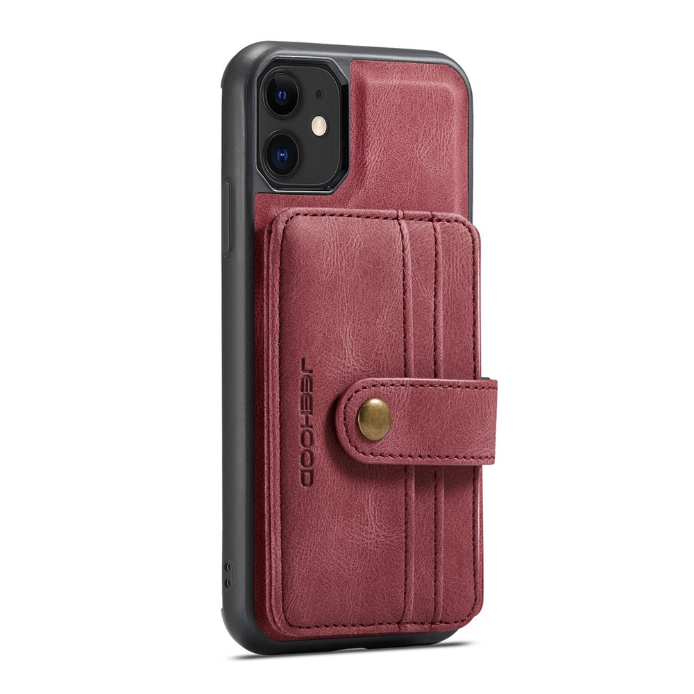 JEEHOOD Shockproof Wallet Phone Case for iPhone 11 6.1 inch RFID Blocking Anti-fall Phone Cover Scratch Resistant Protector Support Wireless Charging - Red