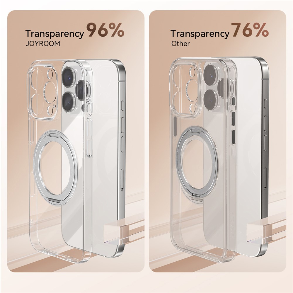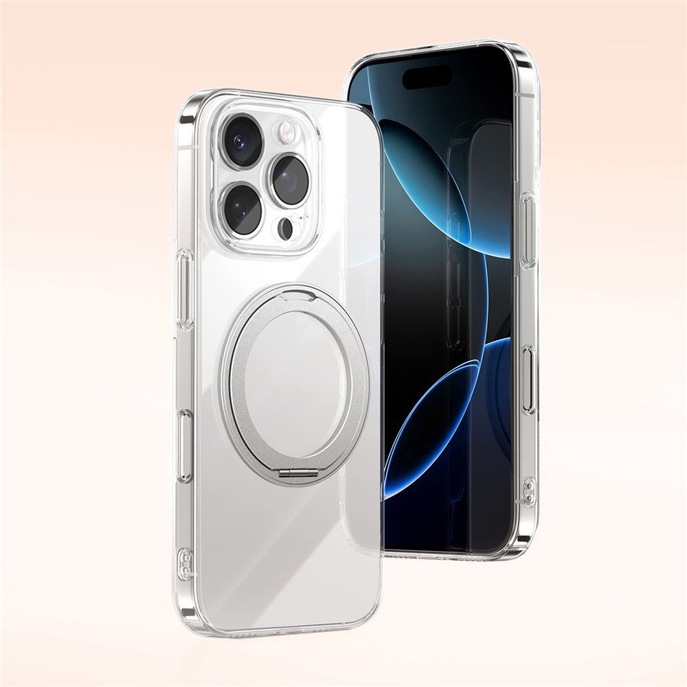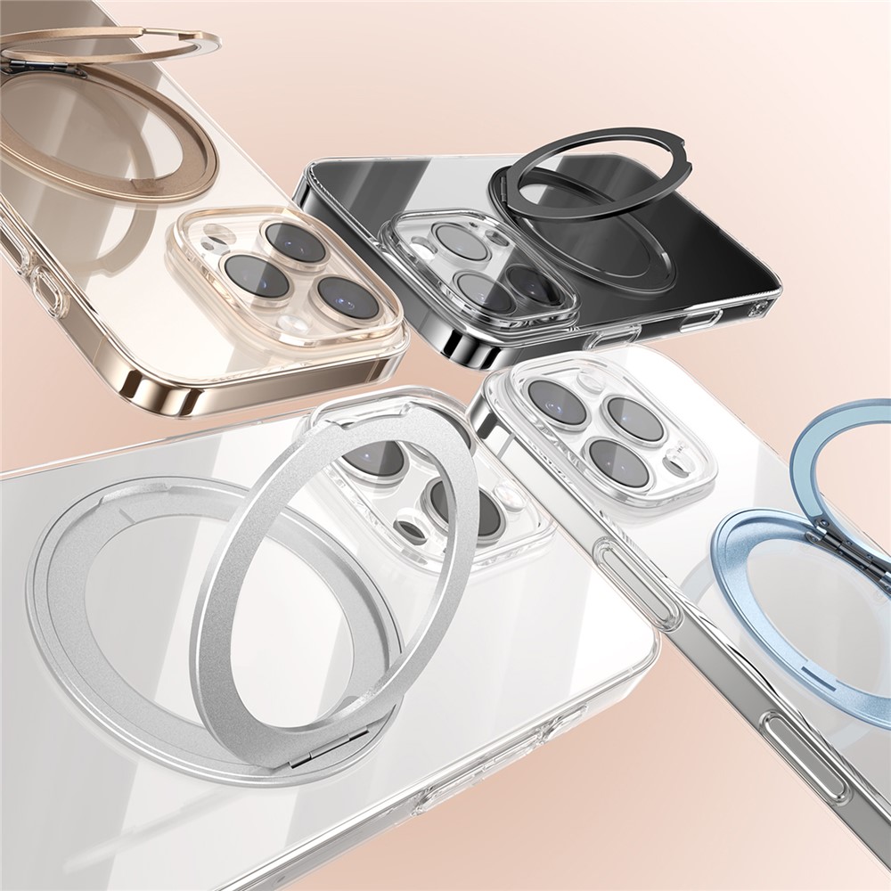 - 360° Rotating Magnetic Kickstand Built-in magnetic ring is a rotating kickstand for hands-free viewing and stress relief. Strong magnetic alignment compatible with MagSafe charging docks and car mounts