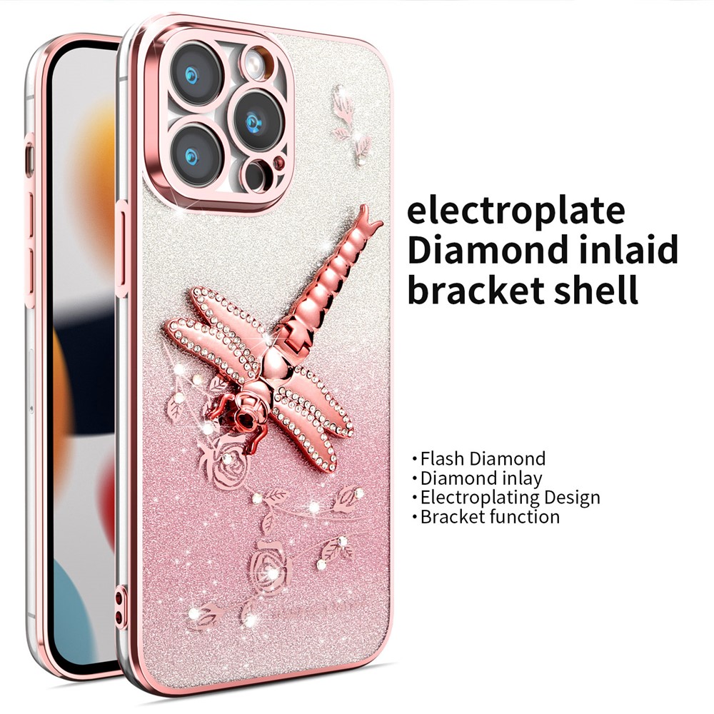 - Sparkling Design Featuring an eternal flower and rhinestone decoration with a gradient glitter card, this phone case adds a touch of elegance and sparkle to your device
