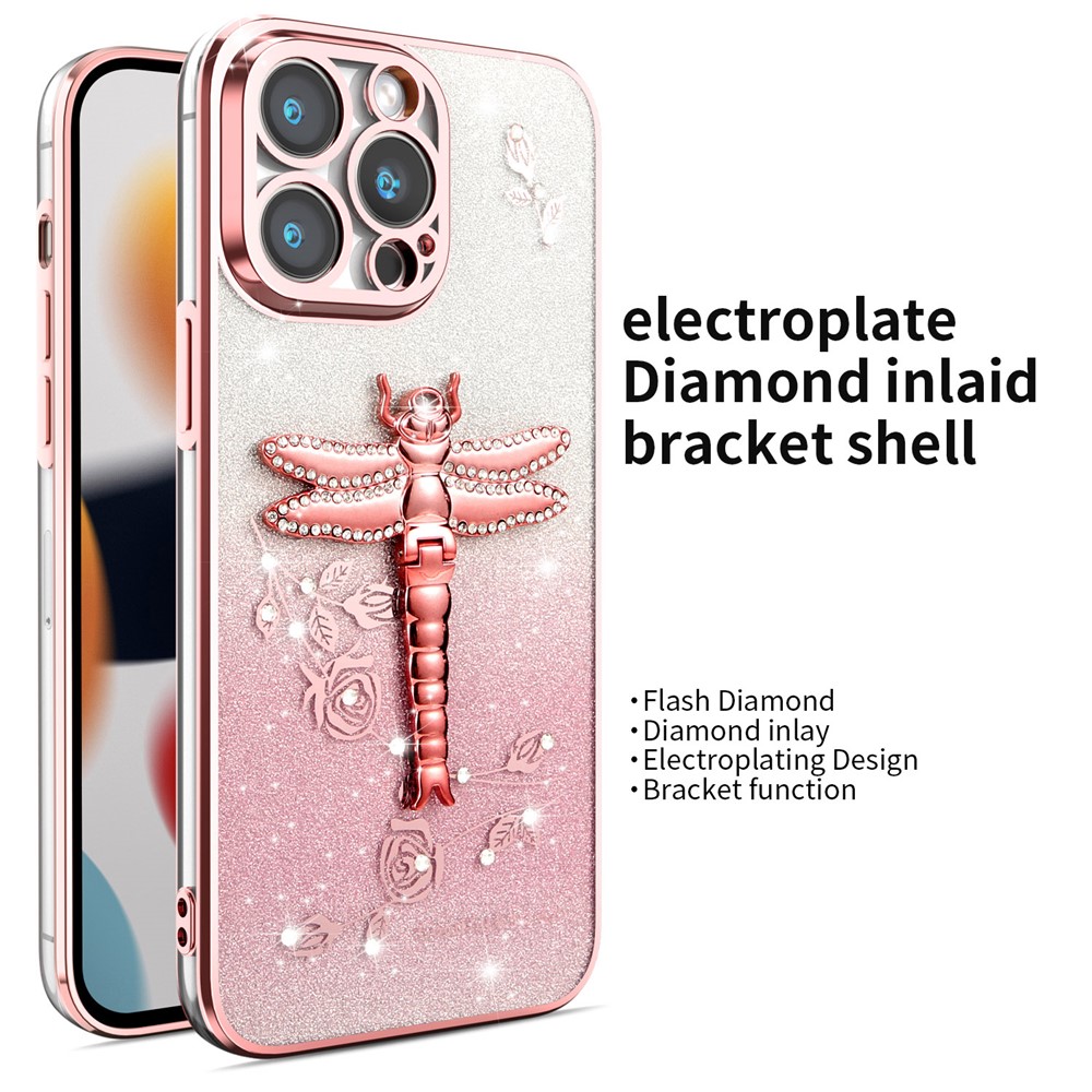 - Sparkling Design Featuring an eternal flower and rhinestone decoration with a gradient glitter card, this phone case adds a touch of elegance and sparkle to your device