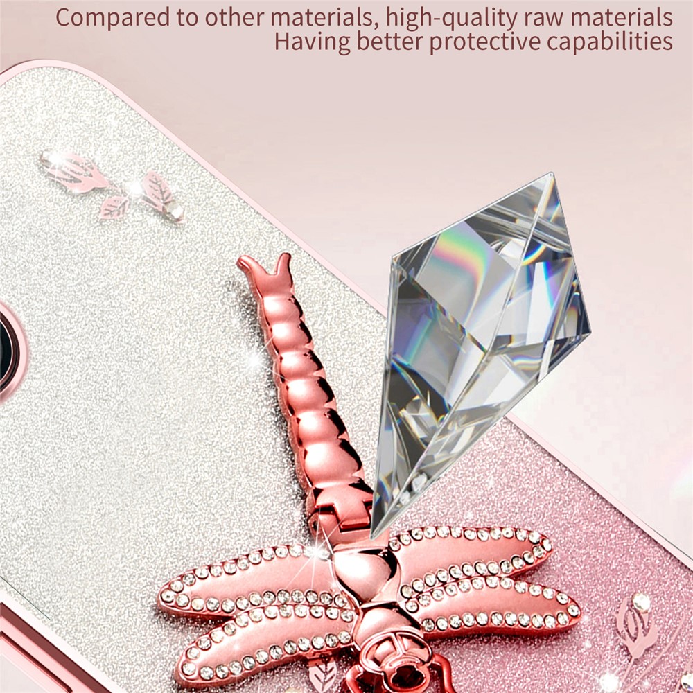 - Sparkling Design Featuring an eternal flower and rhinestone decoration with a gradient glitter card, this phone case adds a touch of elegance and sparkle to your device