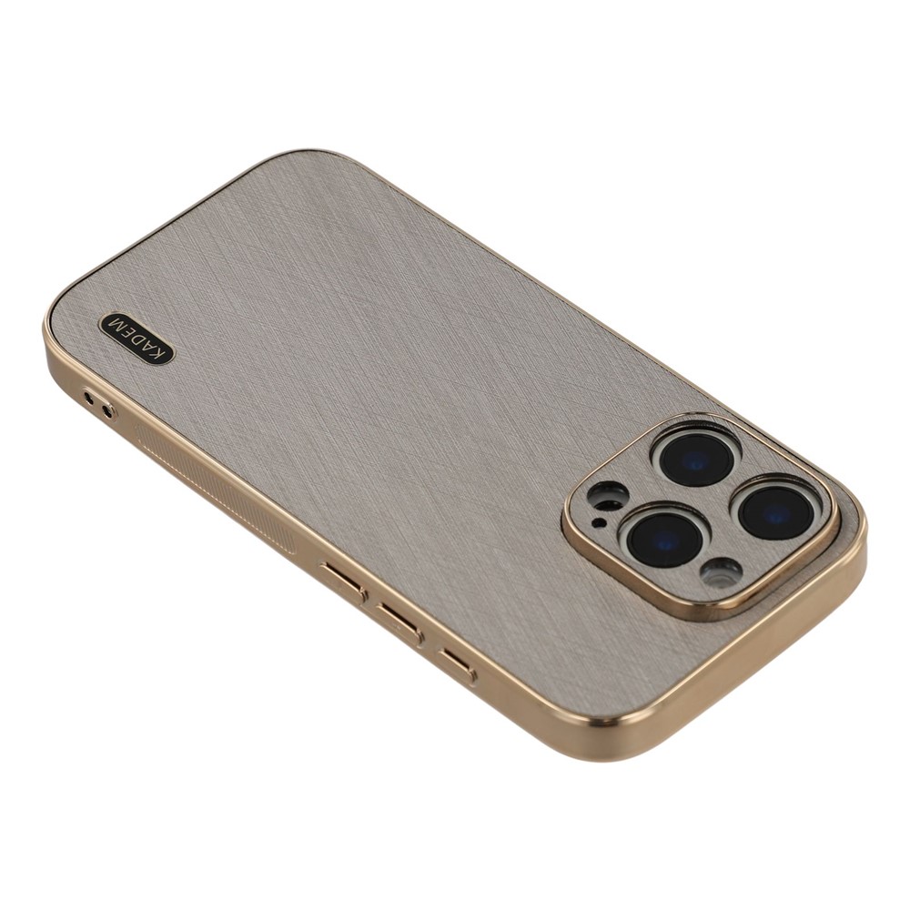 KADEM For iPhone 16 Pro Max Case Electroplating Silk Texture PU + TPU Phone Back Cover – Gold