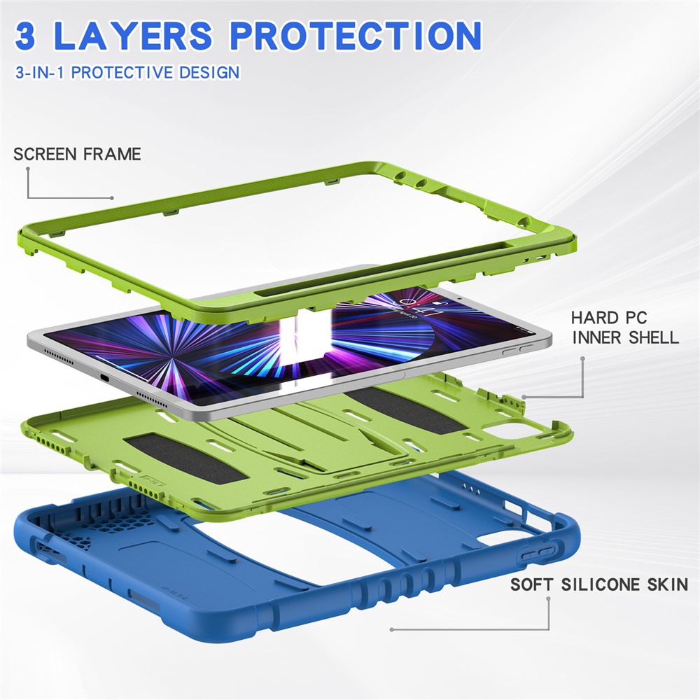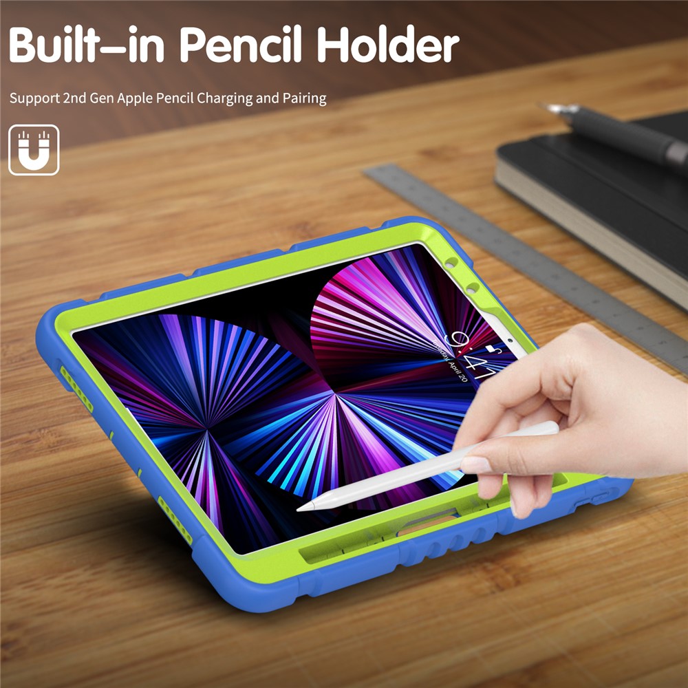 Kickstand Design Drop-Proof Hybrid Tablet Cover with Stylus Pen Magnetic Pairing and Charging Function for iPad Pro 11 (2022) / (2021) / (2020) / (2018) / Air (2020) / Air (2022) – Blue / Lime