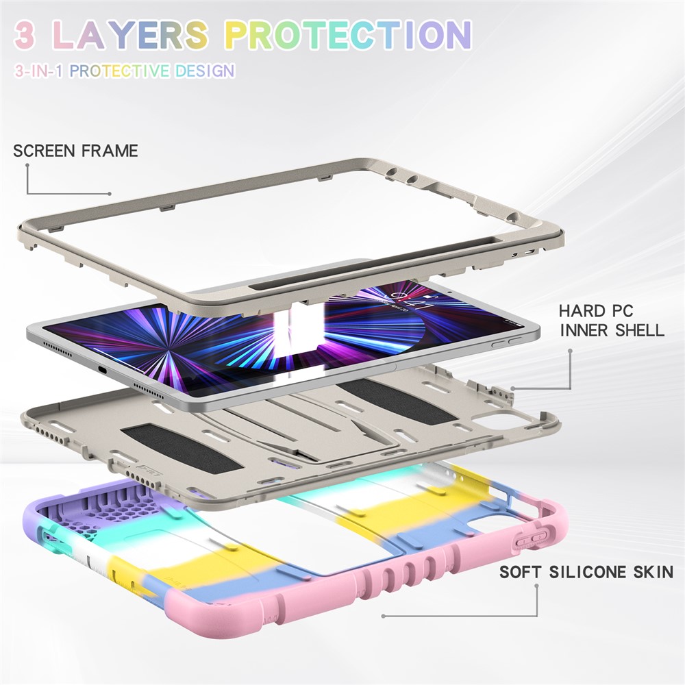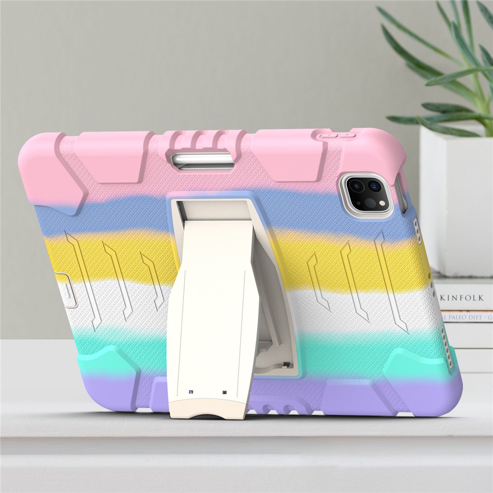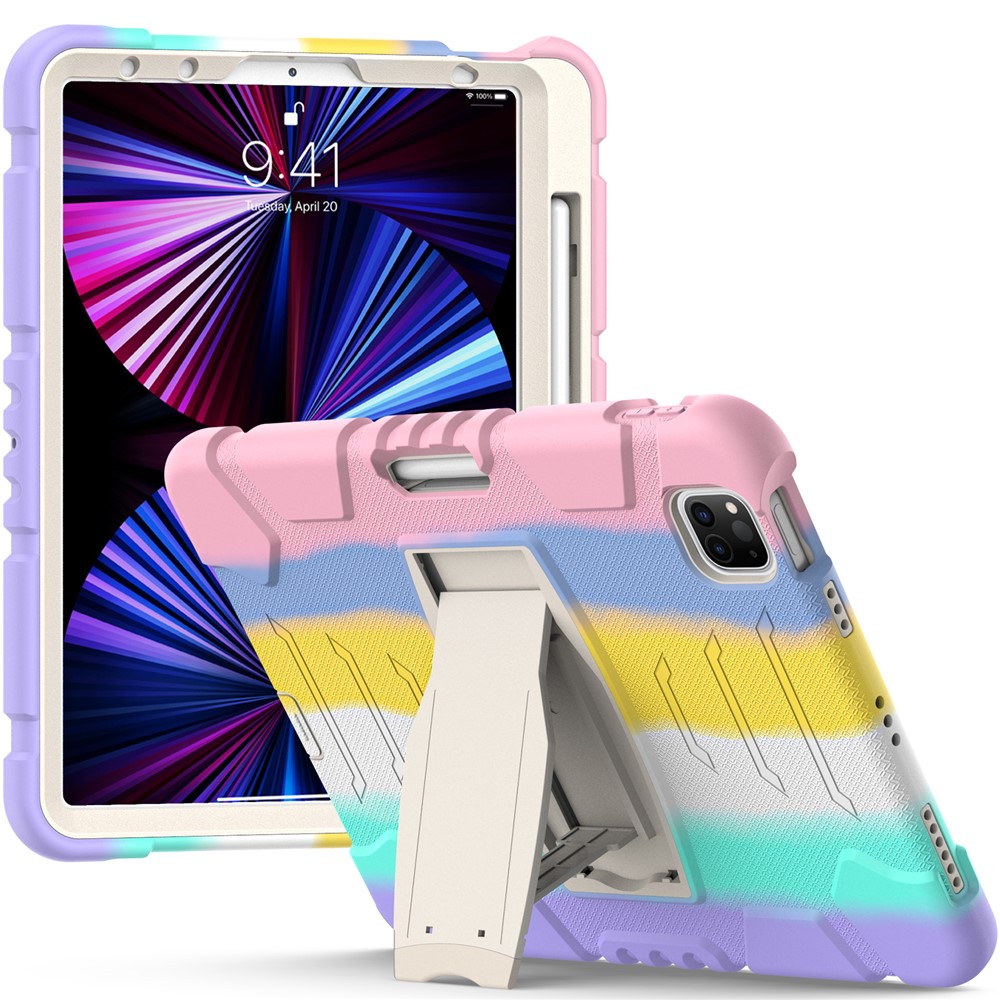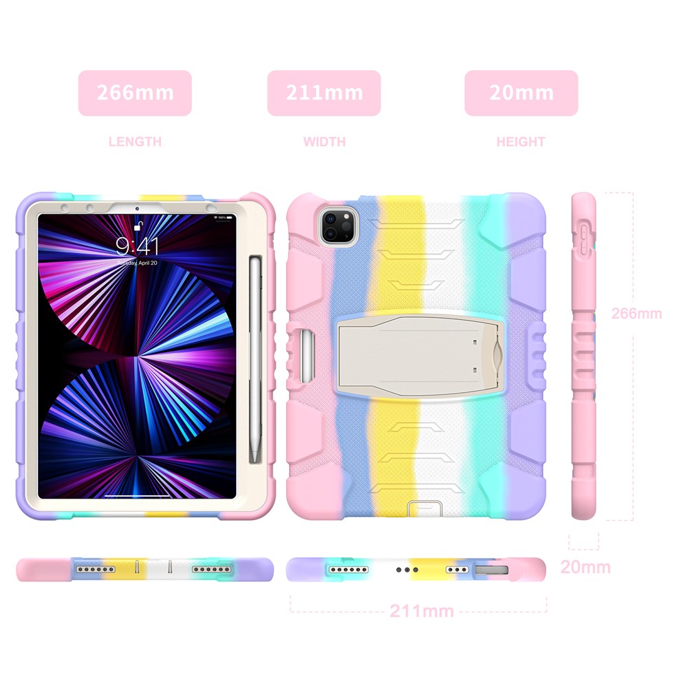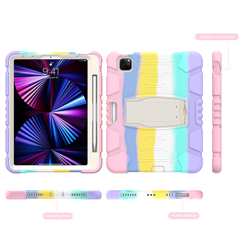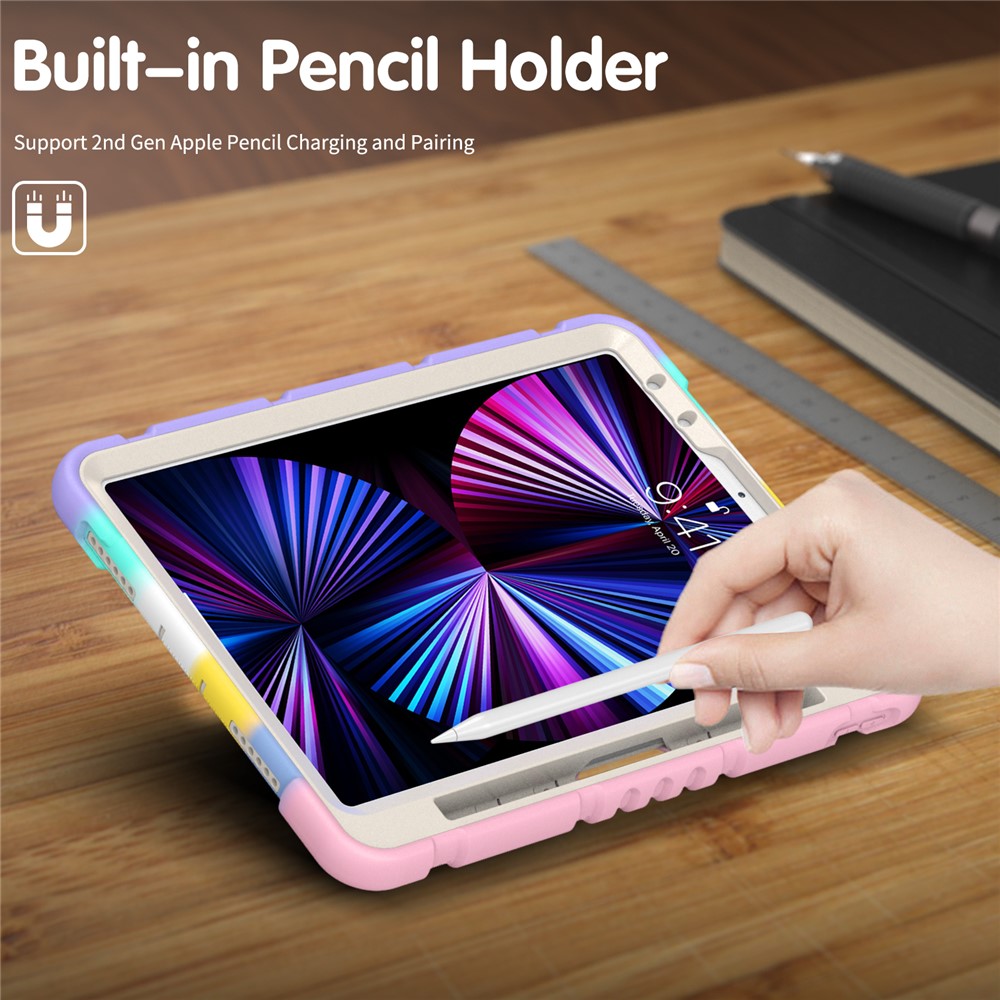 Kickstand Design Drop-Proof Hybrid Tablet Cover with Stylus Pen Magnetic Pairing and Charging Function for iPad Pro 11 (2022) / (2021) / (2020) / (2018) / Air (2020) / Air (2022) – Colorful / Pink