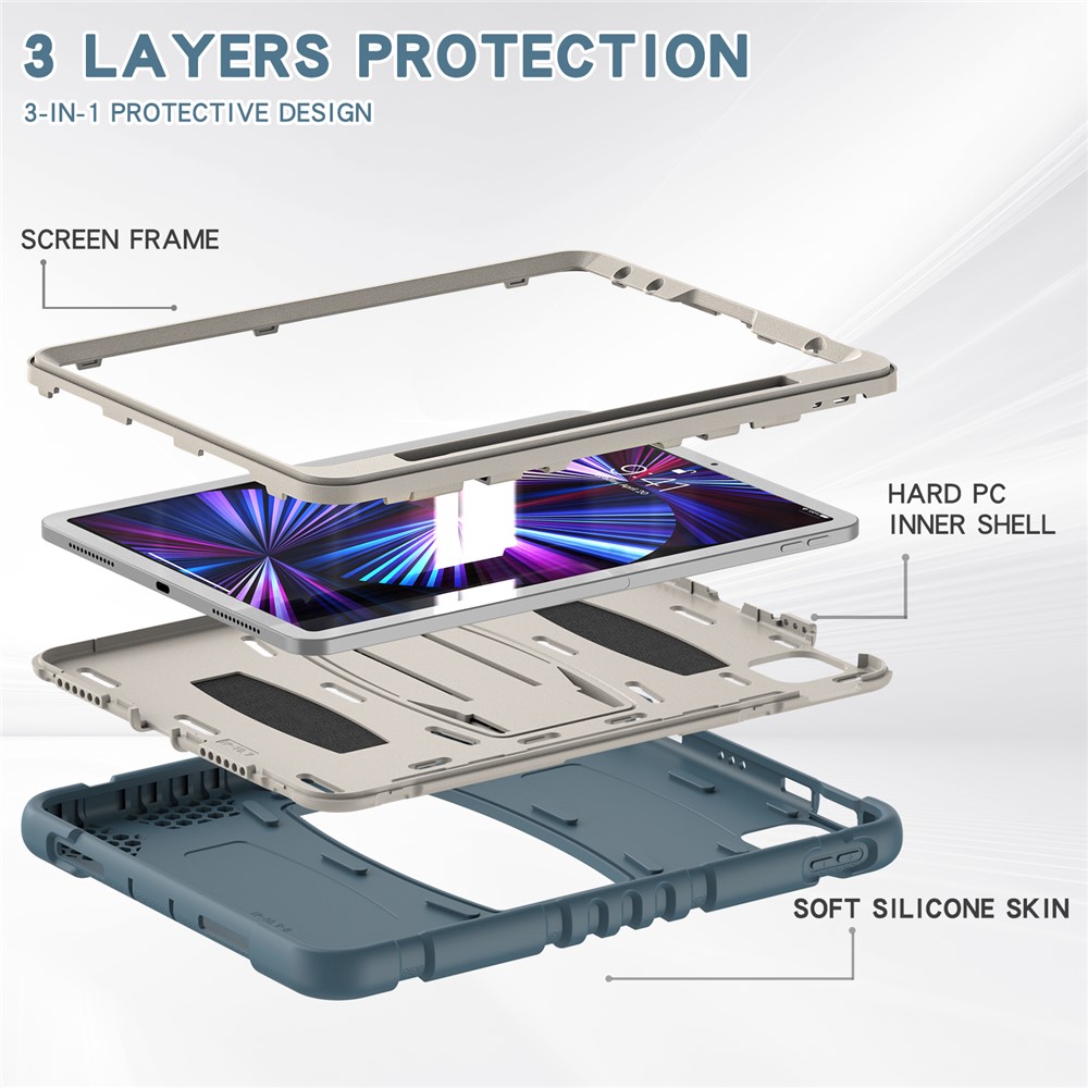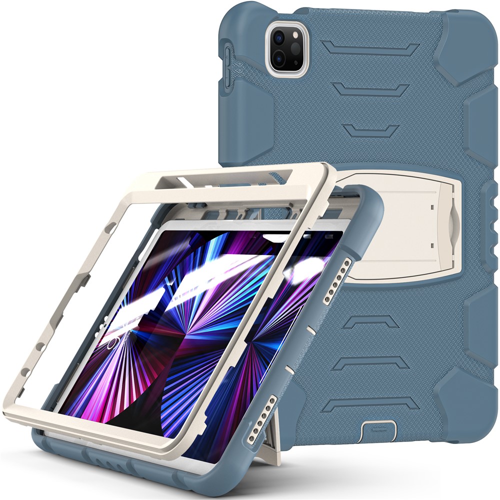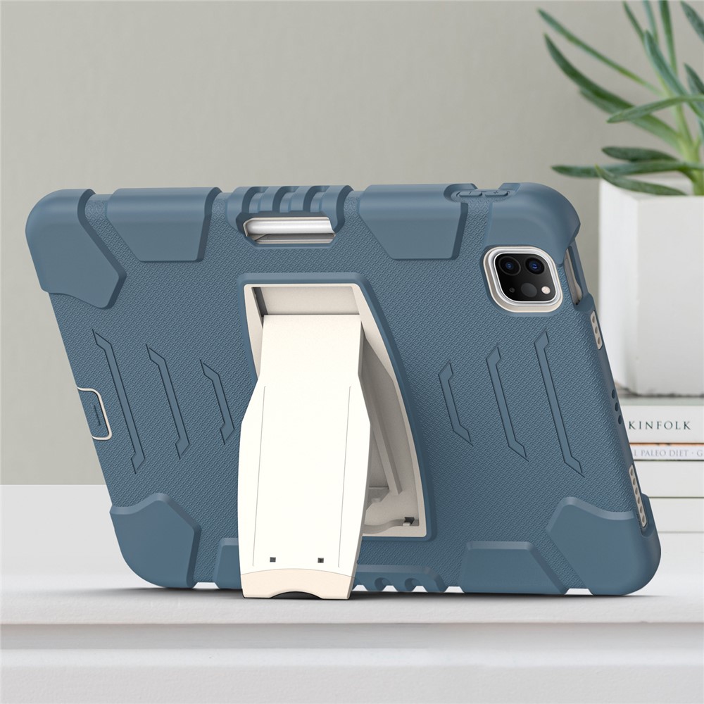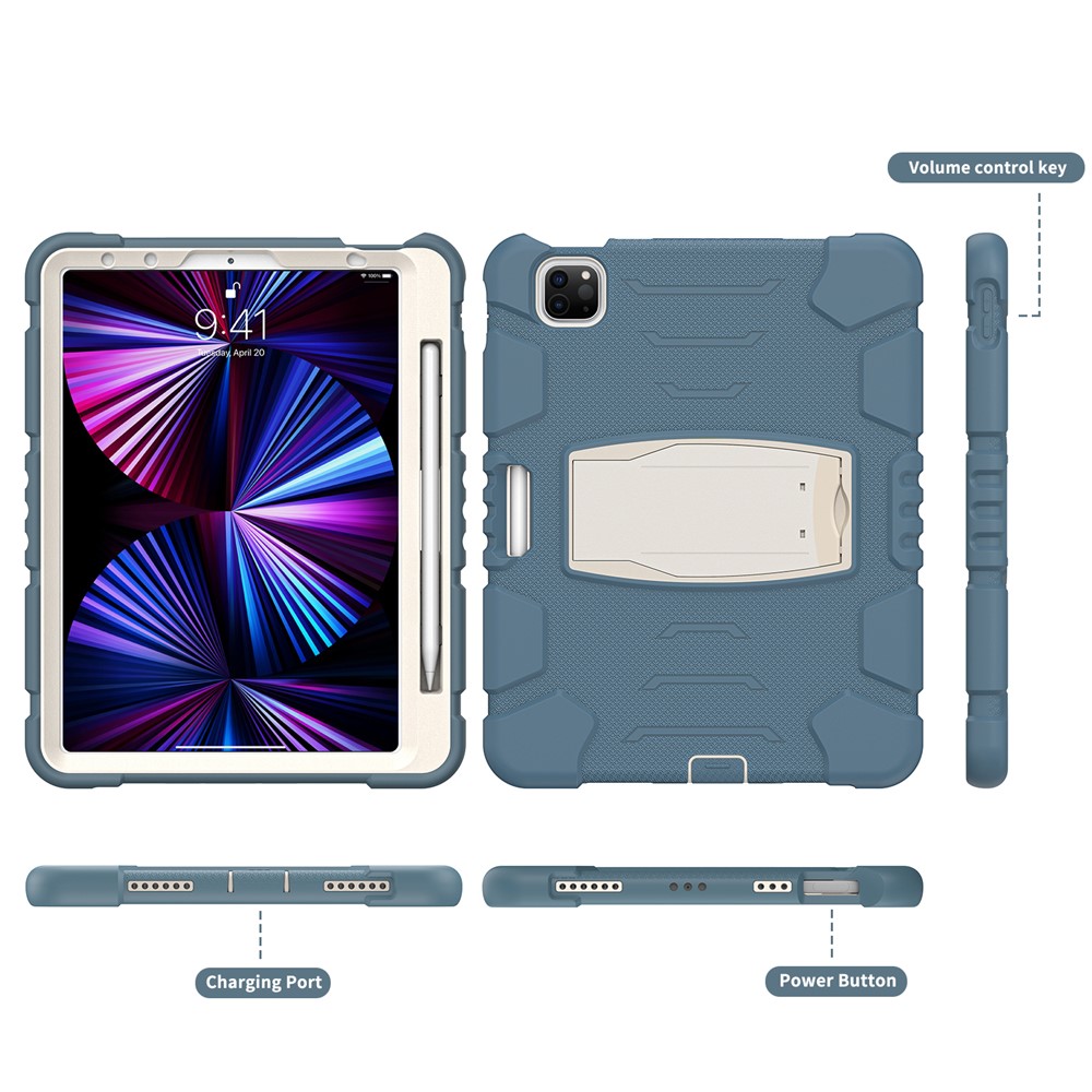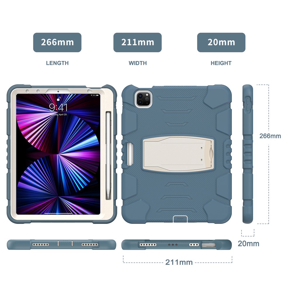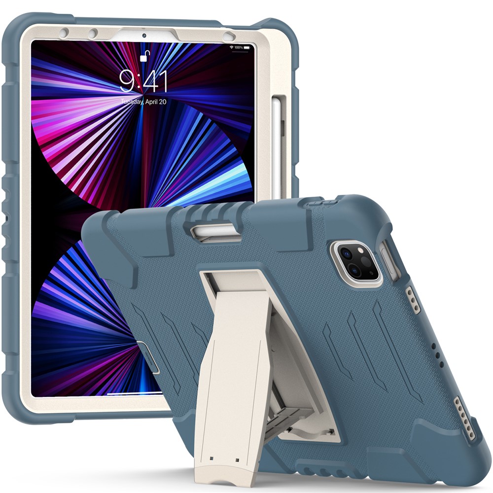 Kickstand Design Drop-Proof Hybrid Tablet Cover with Stylus Pen Magnetic Pairing and Charging Function for iPad Pro 11 (2022) / (2021) / (2020) / (2018) / Air (2020) / Air (2022) – Cornflower Blue
