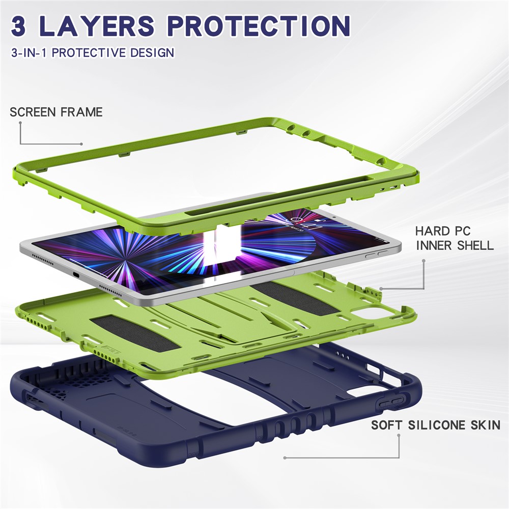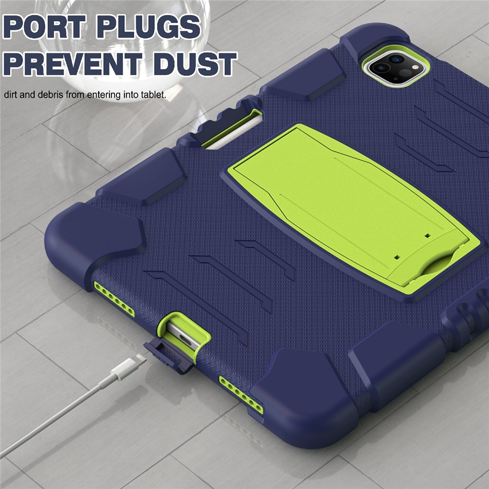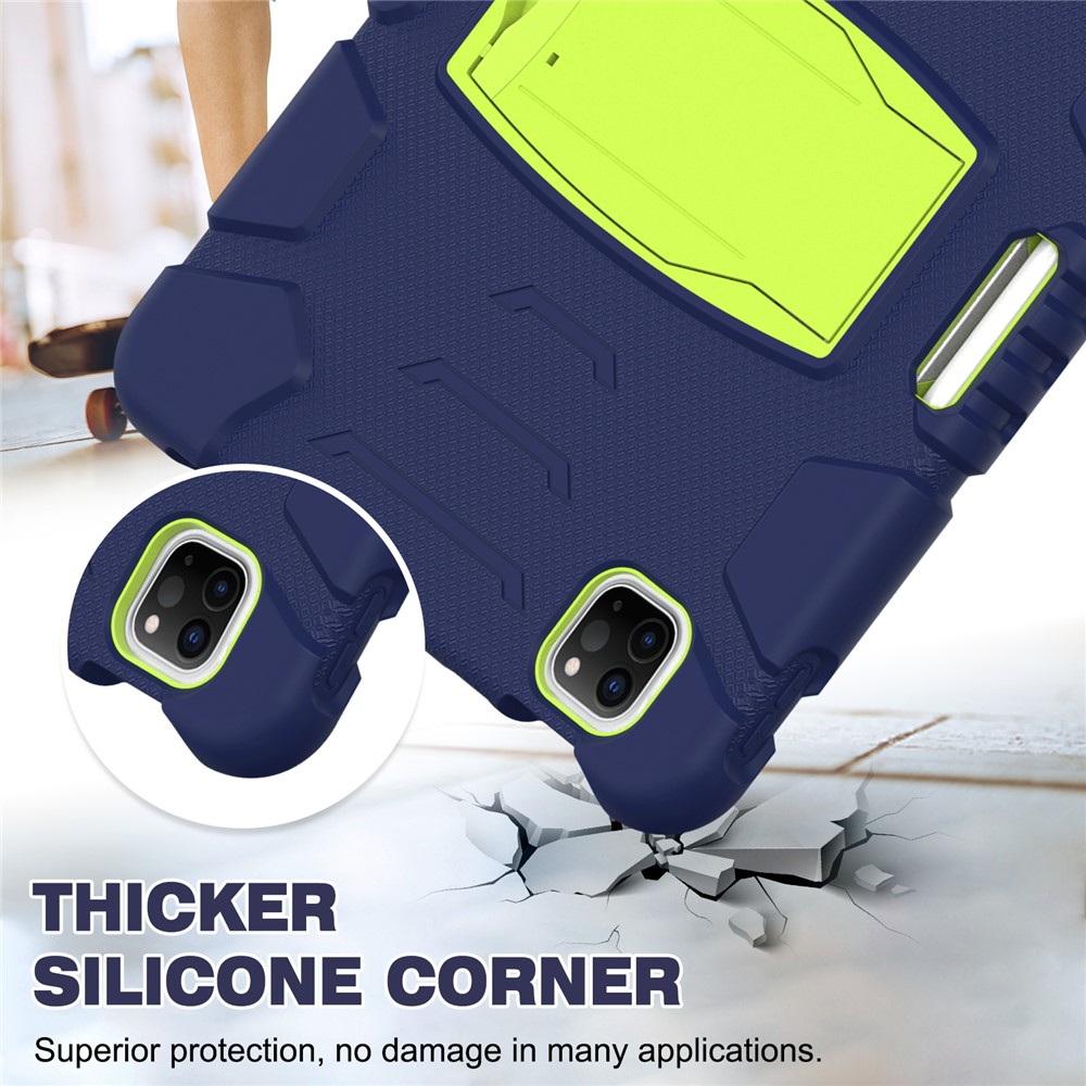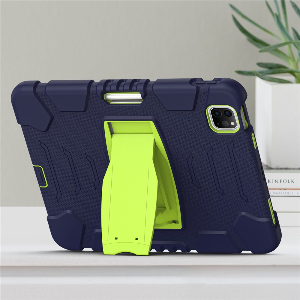 Kickstand Design Drop-Proof Hybrid Tablet Cover with Stylus Pen Magnetic Pairing and Charging Function for iPad Pro 11 (2022) / (2021) / (2020) / (2018) / Air (2020) / Air (2022) – Navy Blue / Lime