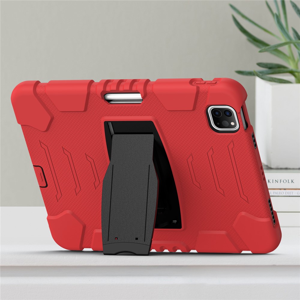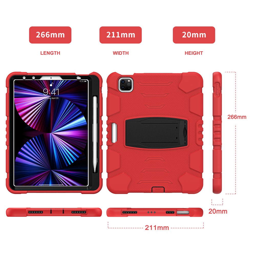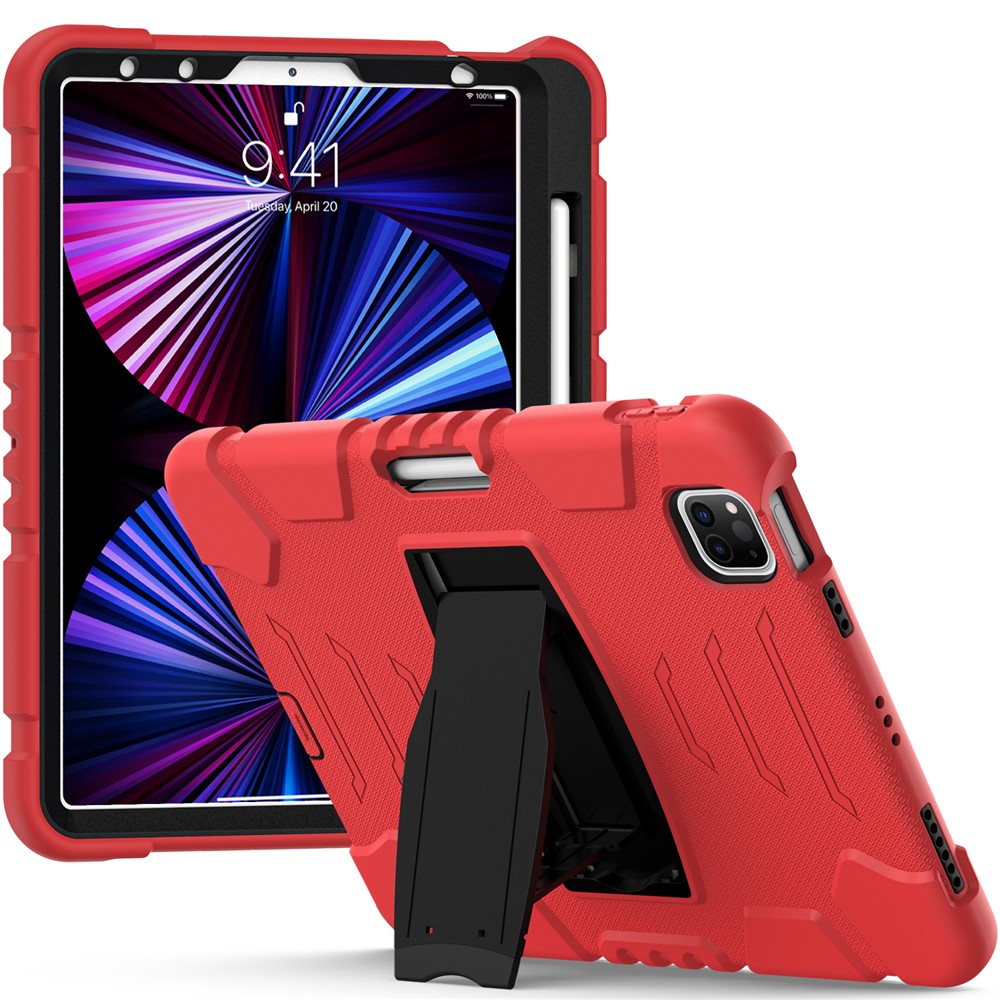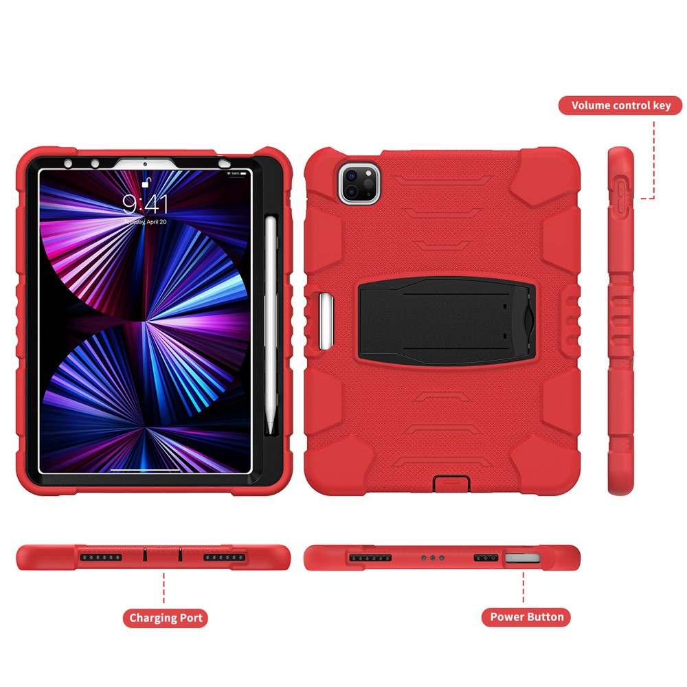 Kickstand Design Drop-Proof Hybrid Tablet Cover with Stylus Pen Magnetic Pairing and Charging Function for iPad Pro 11 (2022) / (2021) / (2020) / (2018) / Air (2020) / Air (2022) – Red / Black
