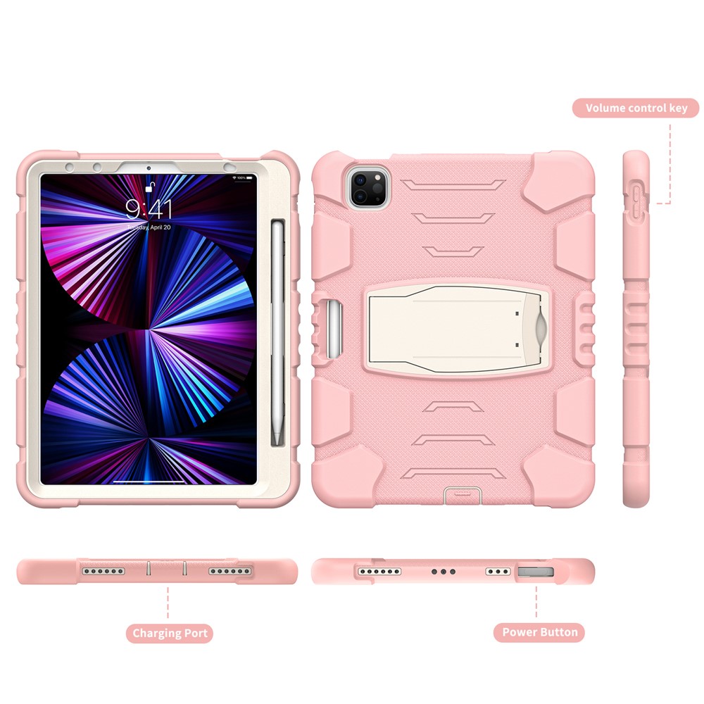 Kickstand Design Drop-Proof Hybrid Tablet Cover with Stylus Pen Magnetic Pairing and Charging Function for iPad Pro 11 (2022) / (2021) / (2020) / (2018) / Air (2020) / Air (2022) – Sakura Pink