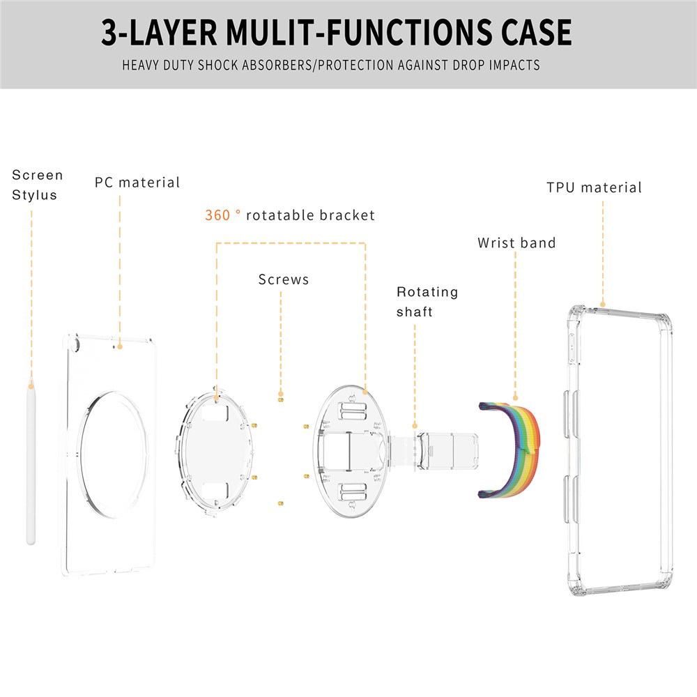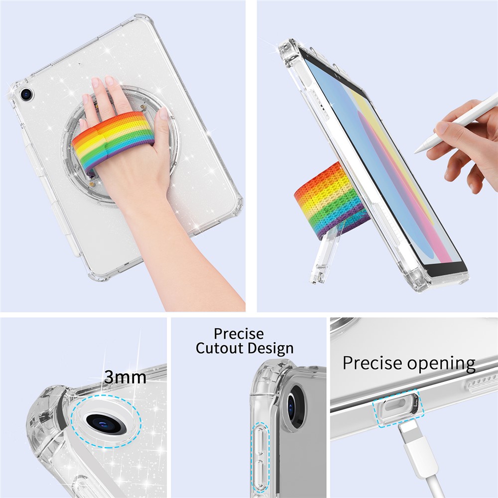 - The rotary hand strap is convenient for carrying your tablet, and the hand strap is detachable