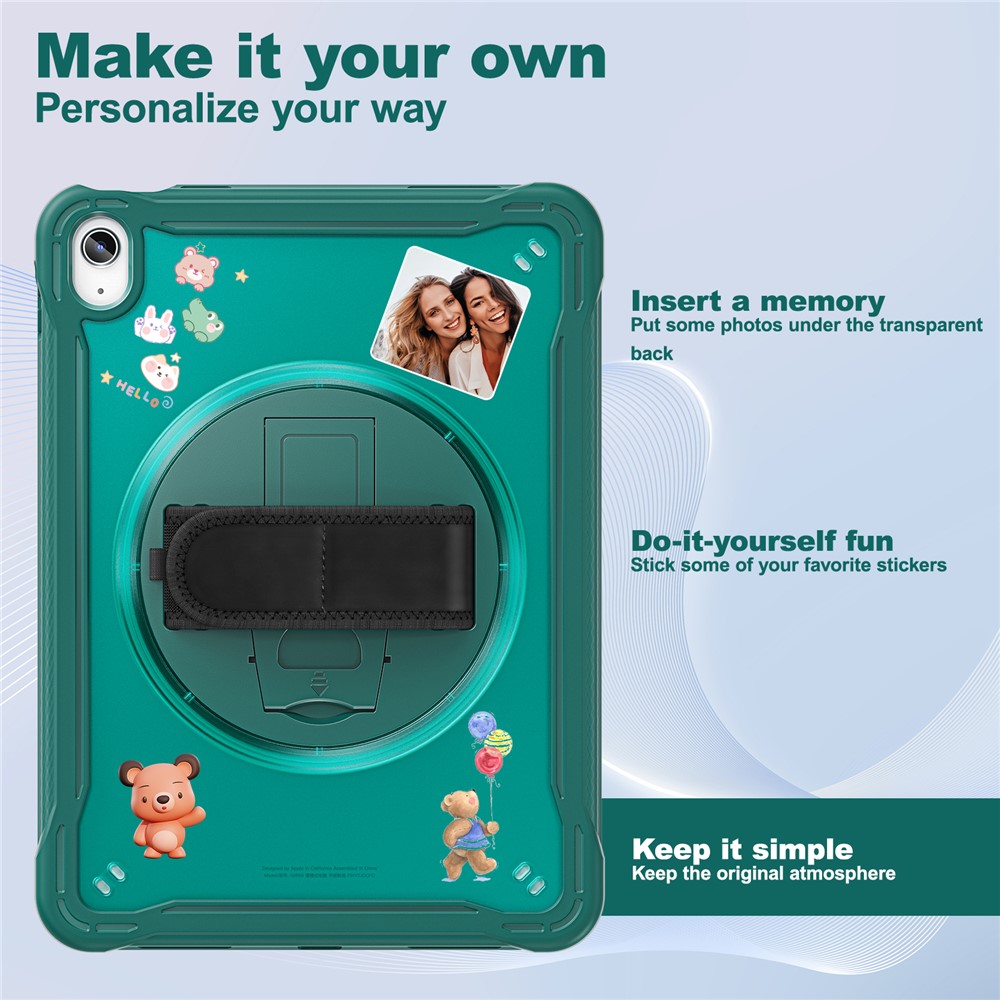 - The rotary hand strap is convenient for carrying your tablet, and the hand strap is detachable