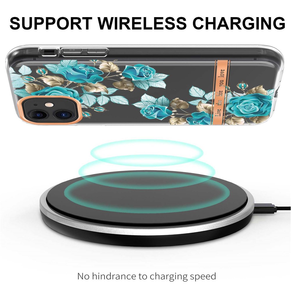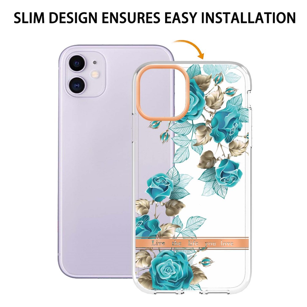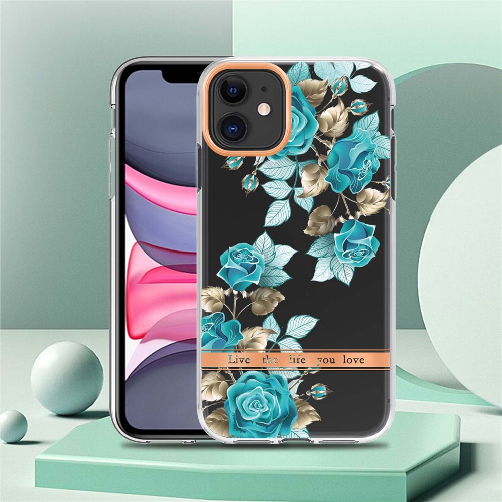 LB5 Series TPU Phone Case for iPhone 11 6.1 inch, Electroplating Flower Patterns IMD IML Phone Protective Cover – HC002 Blue Rose
