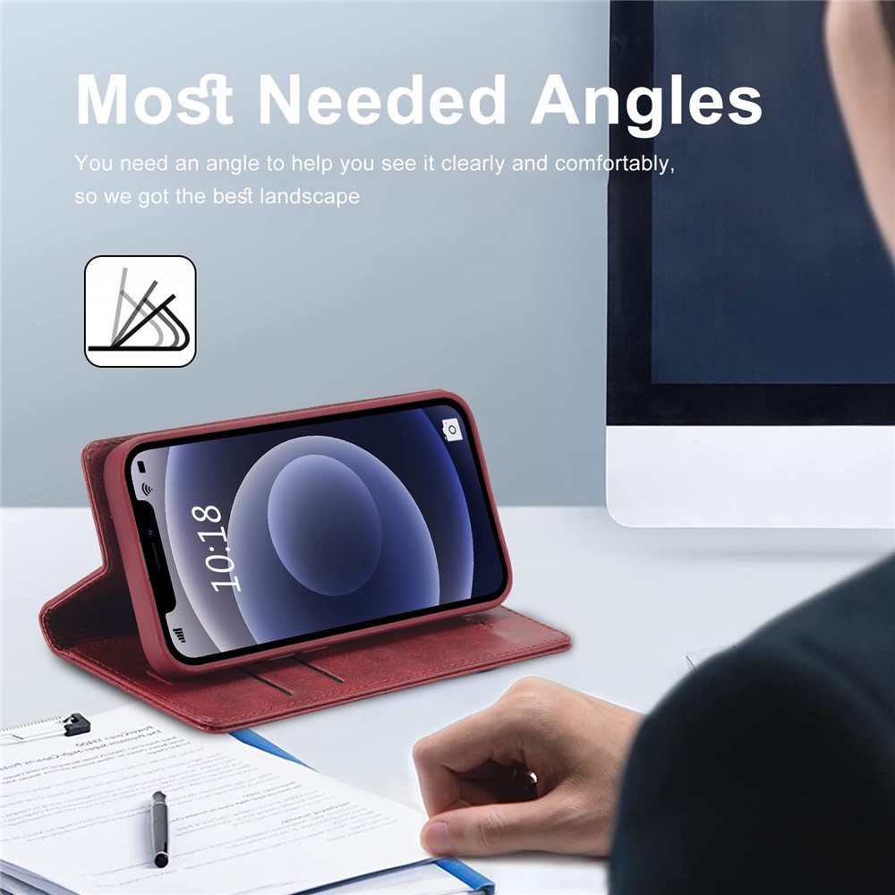 LC.IMEEKE For iPhone 11 6.1 inch RFID Blocking Cell Phone Case PU Leather Wallet Stand Magnetic Auto-absorbed Protective Phone Cover - Red $16.88