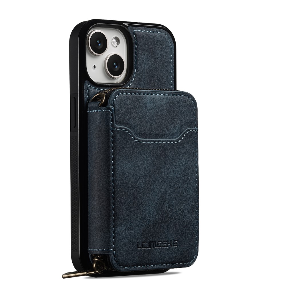 LC.IMEEKE L6 For iPhone 13 mini / 12 mini Magnetic Case Detachable Zipper Wallet Leather Coated PC + TPU Phone Cover - Blue $22.13