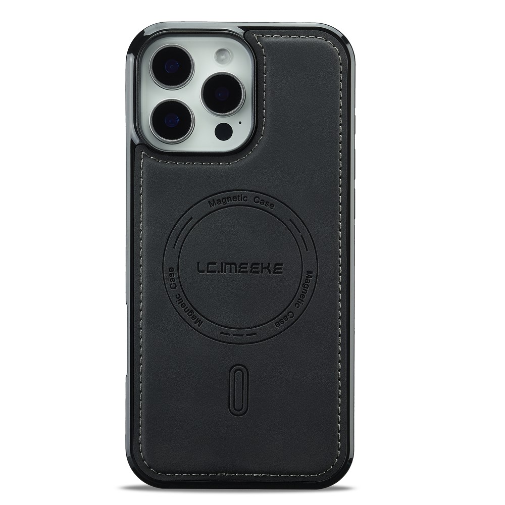 LC.IMEEKE L6 For iPhone 15 Pro Max Case PU Leather Coated PC TPU Phone Cover Compatible with MagSafe - Black