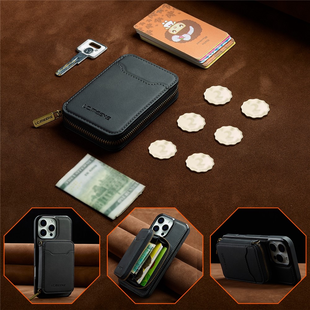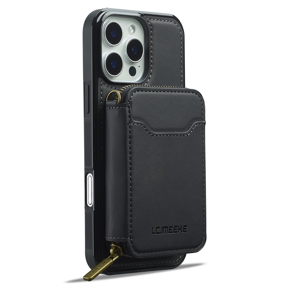 LC.IMEEKE L6 For iPhone 16 Pro Max Magnetic Case Detachable Zipper Wallet Leather Coated PC + TPU Phone Cover – Black