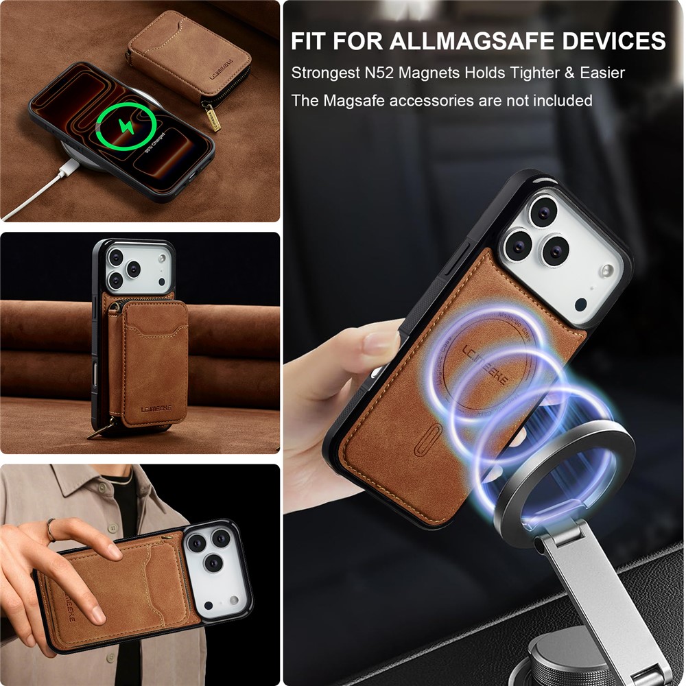 - 2 in 1 Detachable Design Features a detachable wallet and slim case that connect seamlessly with strong built-in magnets, fully compatible with MagSafe accessories.