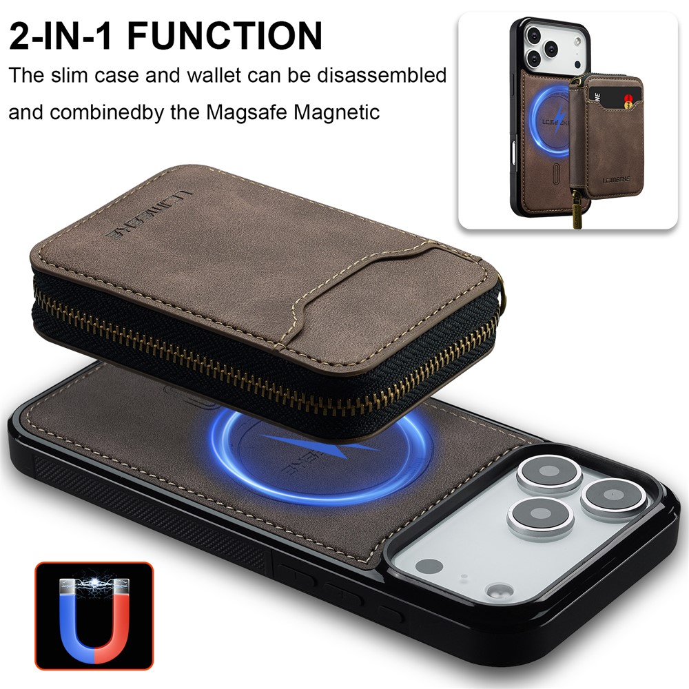 - 2 in 1 Detachable Design Features a detachable wallet and slim case that connect seamlessly with strong built-in magnets, fully compatible with MagSafe accessories.