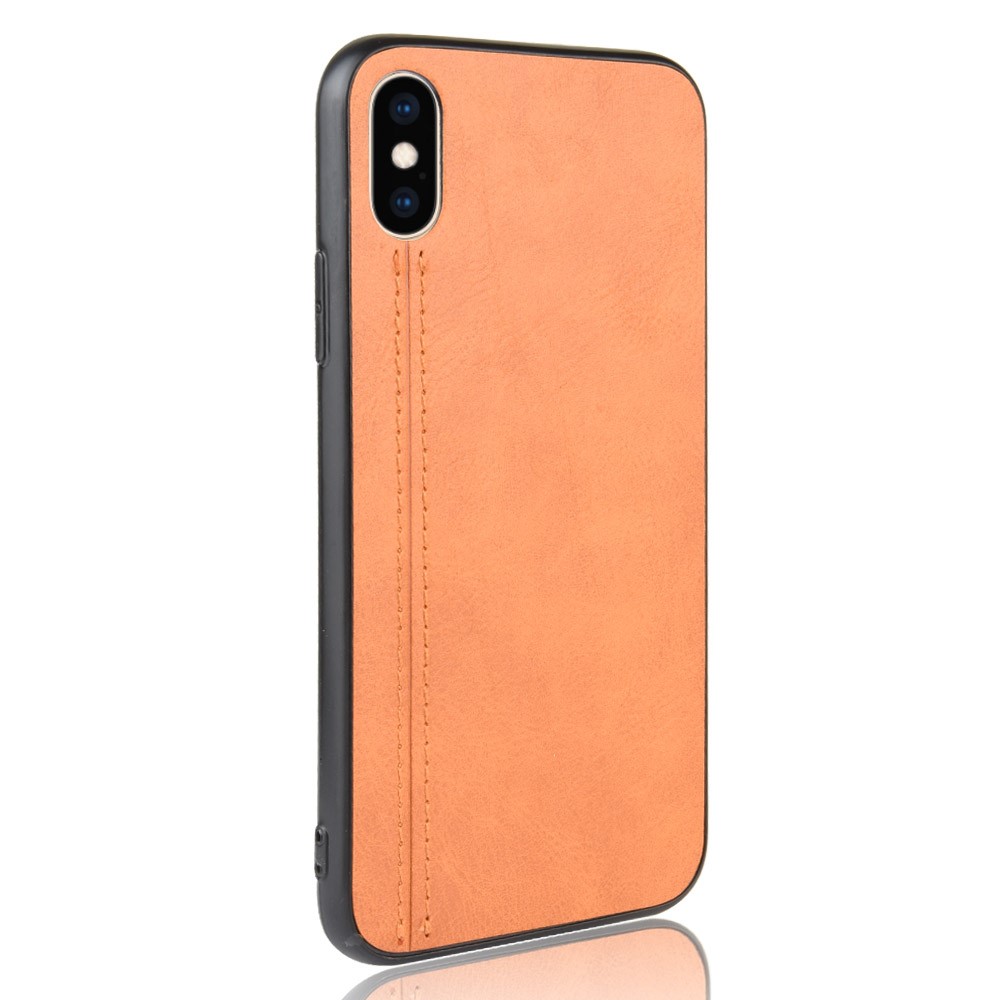 Leather Coated PC + TPU Hybrid Phone Shell Cover for iPhone XS / X 5.8-inch – Yellow