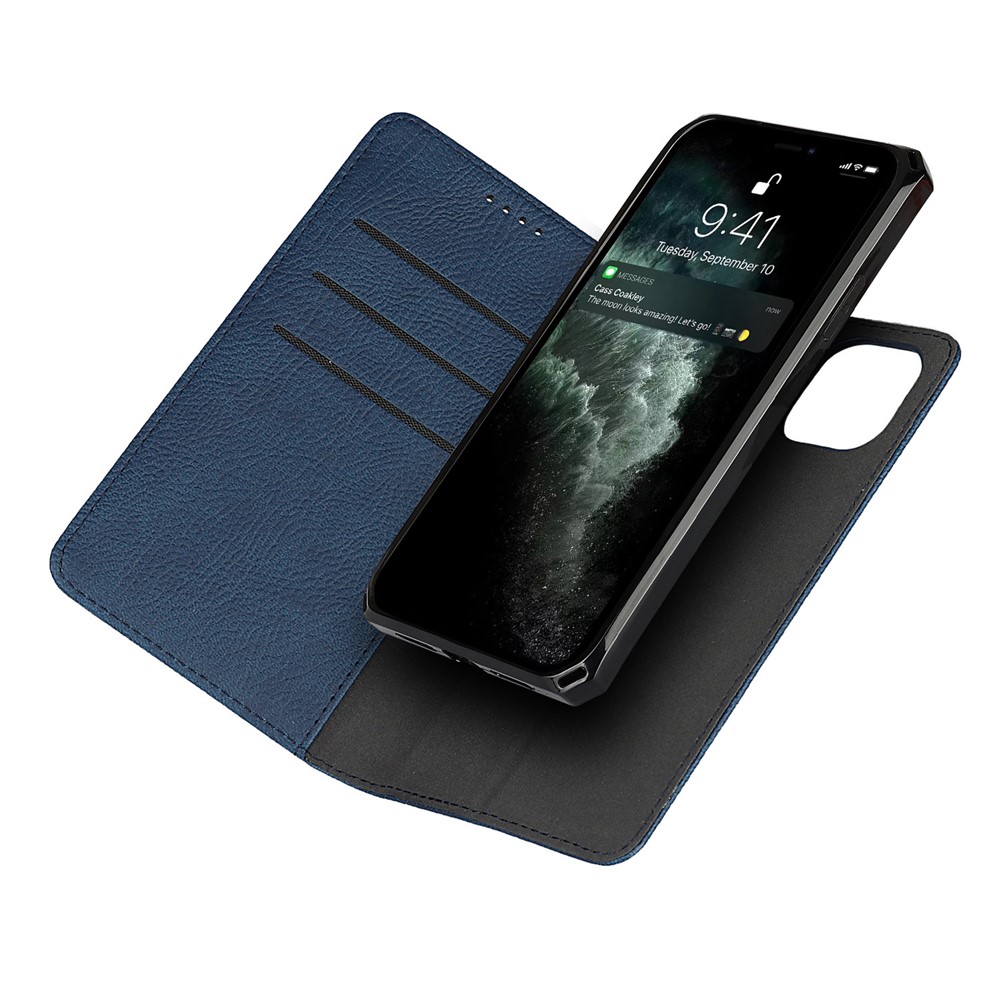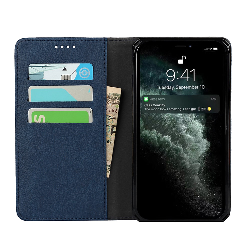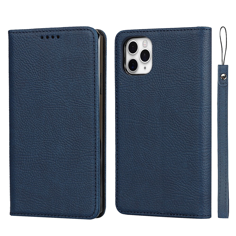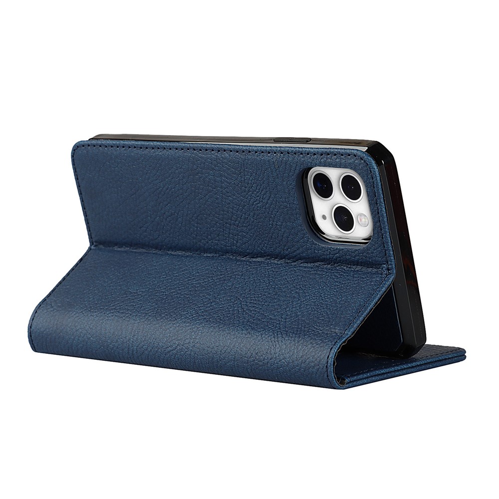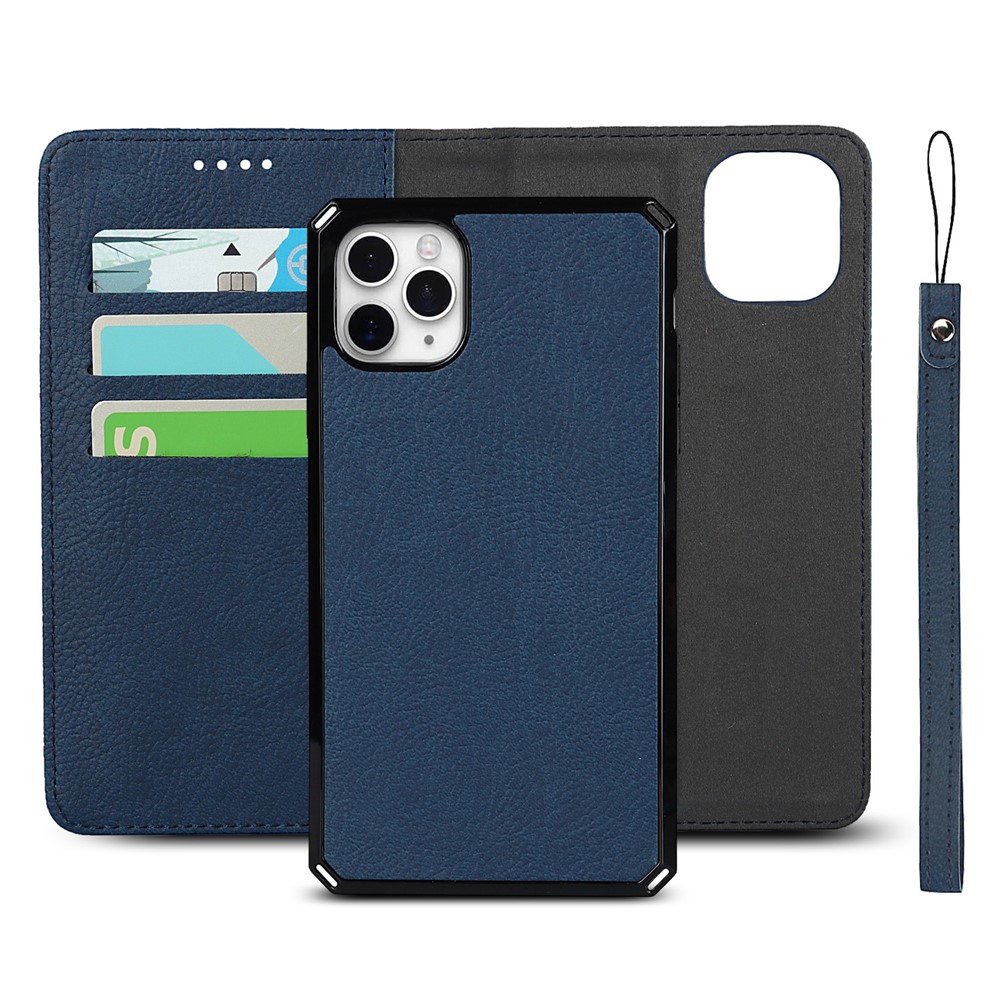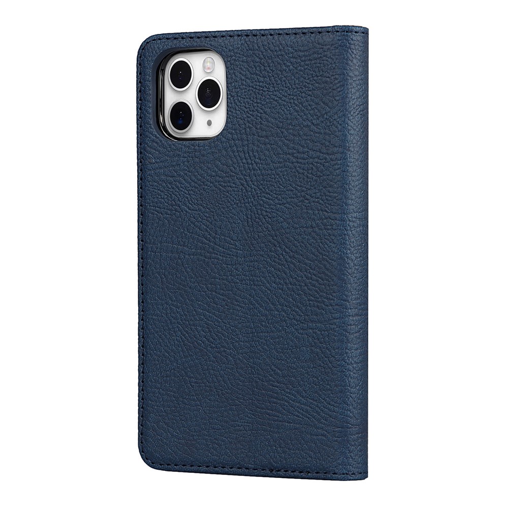 Litchi Skin Stand Genuine Leather TPU Protective Shell for iPhone 11 Pro Max Detachable Case – Blue