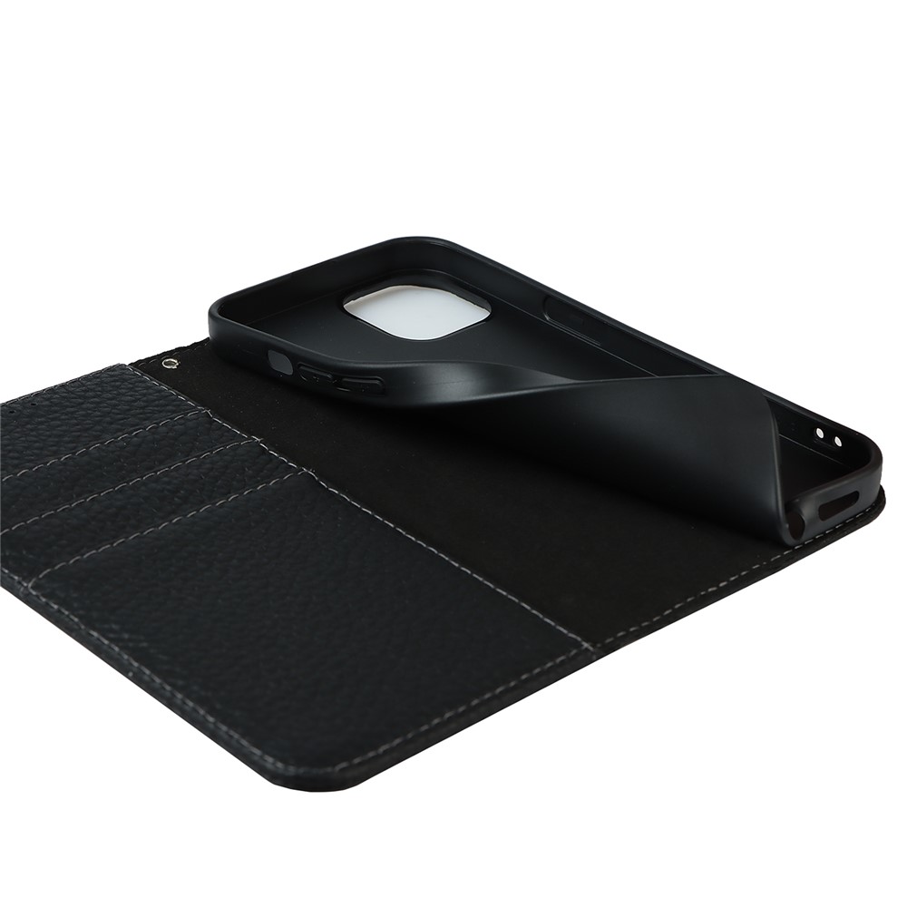Premium genuine leather shell with flexible TPU inner case, with litchi texture surface