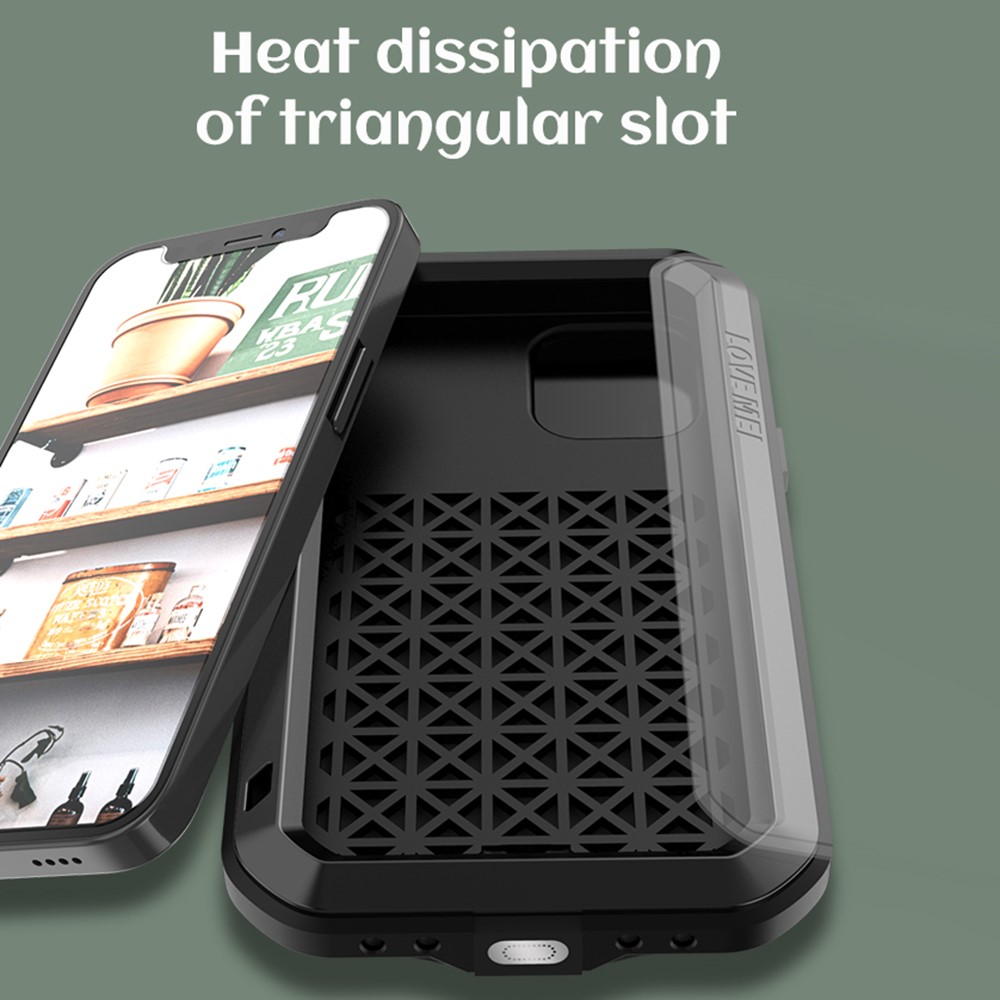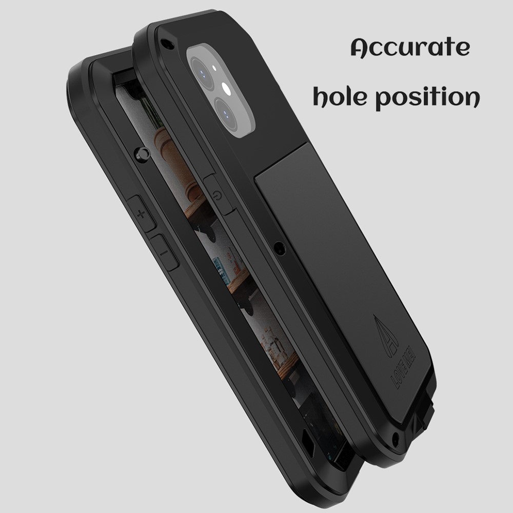 • LOVE MEI For iPhone 12 Full Body Protective Cover Shockproof Metal + Silicone Phone Case with Tempered Glass Film - Black