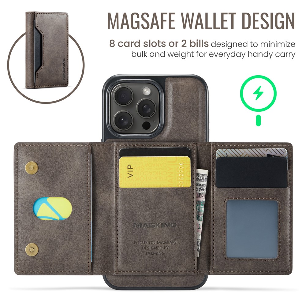 - MagSafe Magnetic Wallet 8 card slots with space for some bills and coins minimize bulk and weight for everyday convenient carry