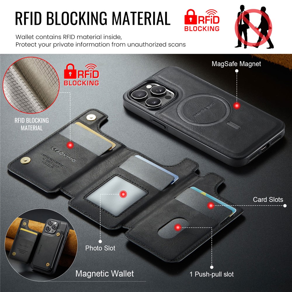 - Magnetic Design Built-in N52 magnetic ring, just take off the wallet to compatible with MagSafe wireless charging without taking off the case