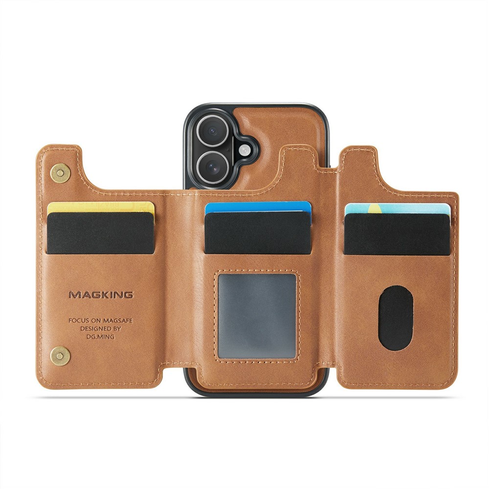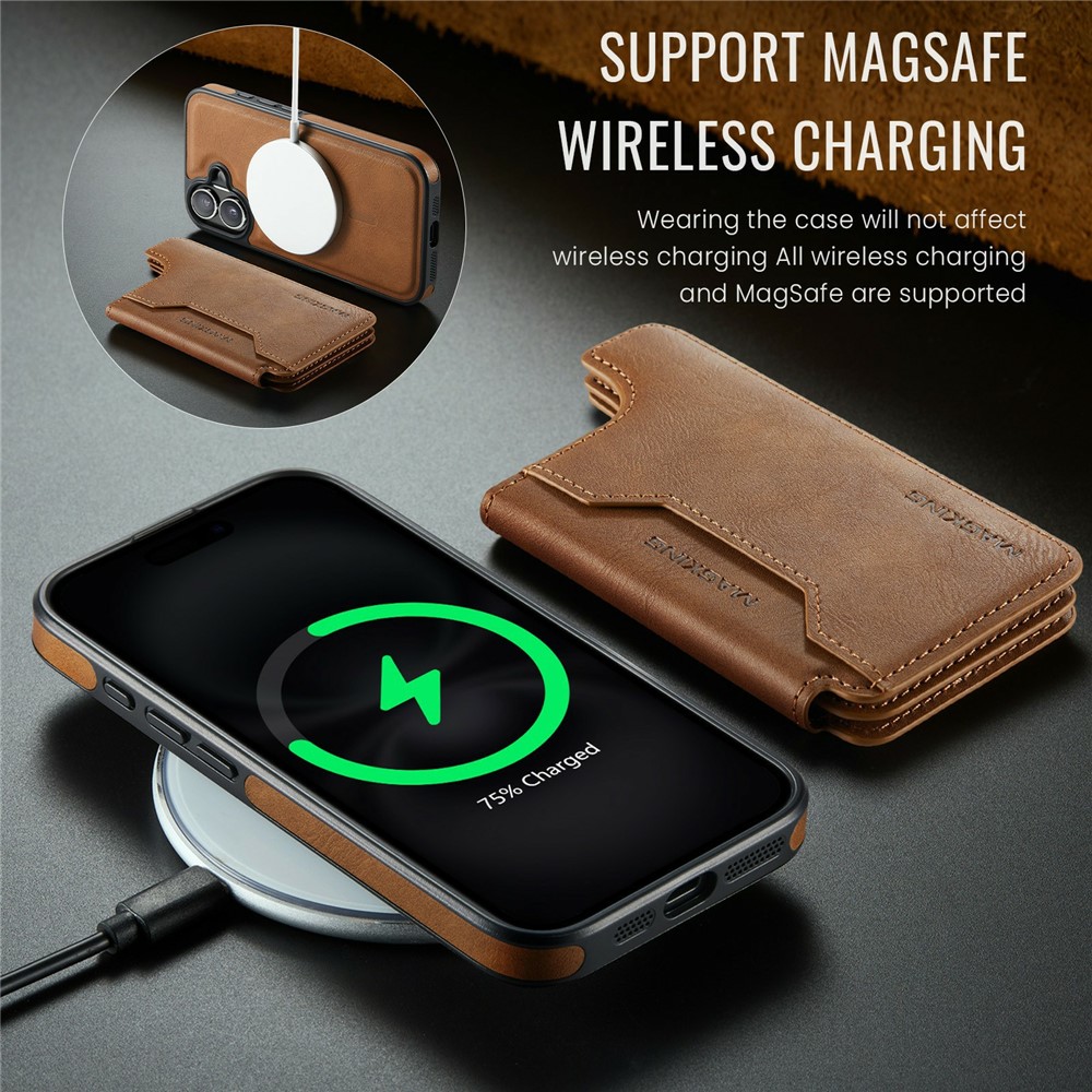 MAGKING K3 Series For iPhone 17 Case Compatible with MagSafe Wallet PC + TPU + PU Phone Cover – Brown