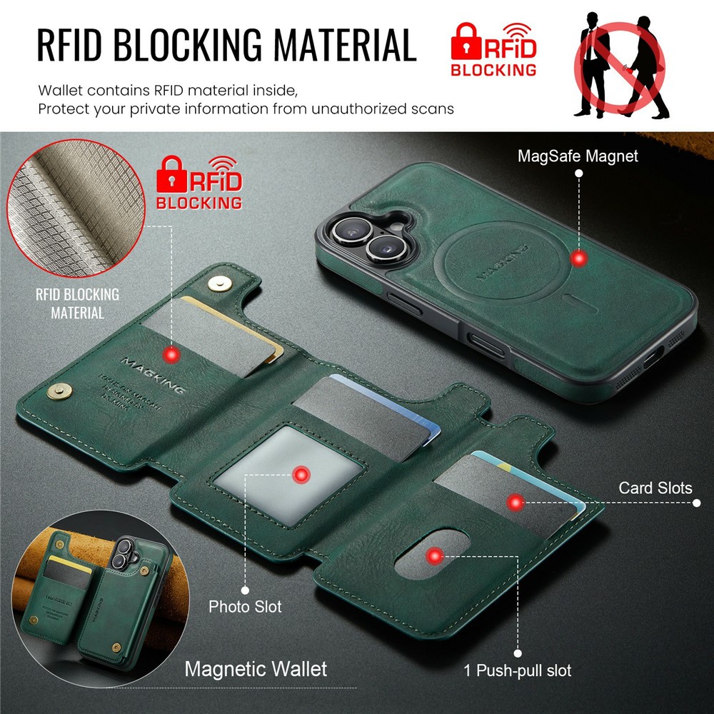 MAGKING K3 Series For iPhone 17 Case Compatible with MagSafe Wallet PC + TPU + PU Phone Cover - Green