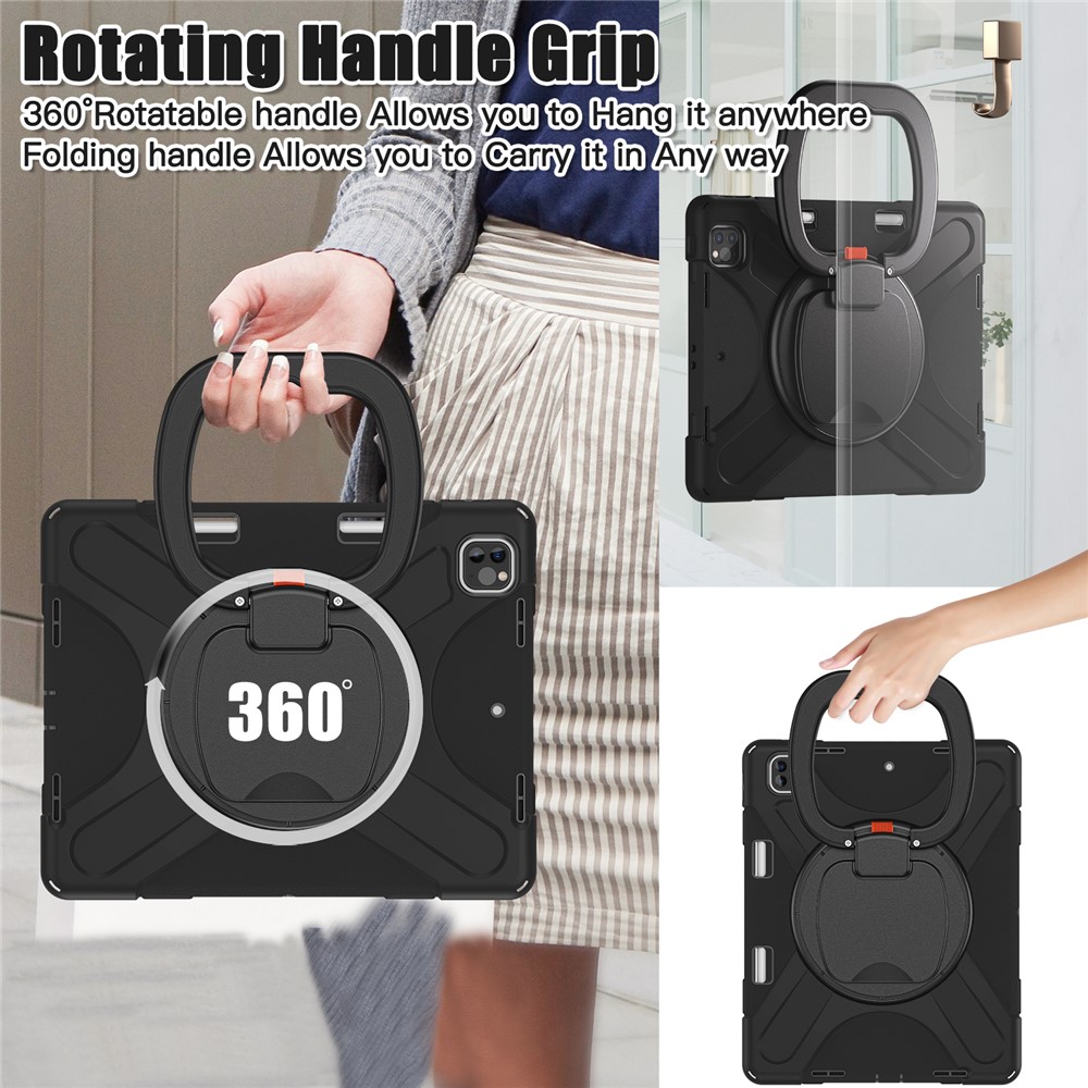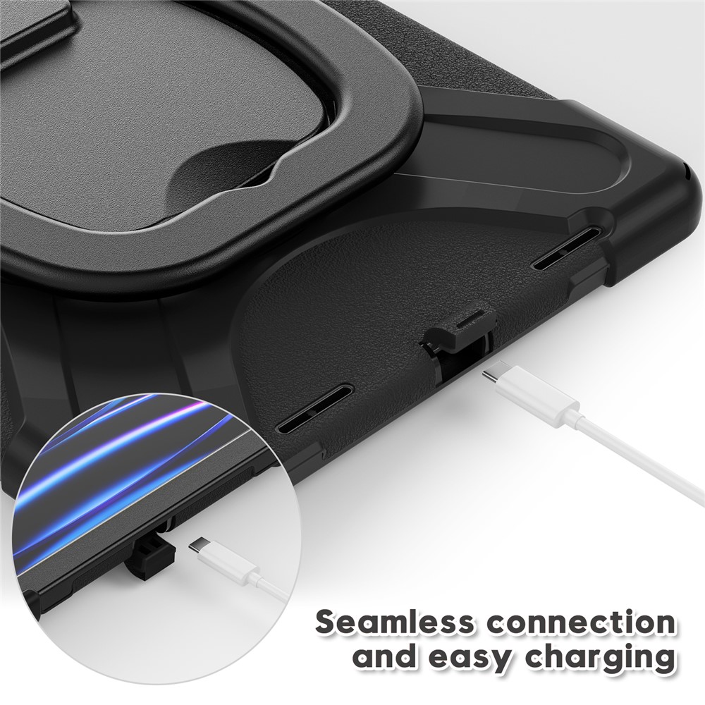 Integrated 360-degree rotary kickstand frees your hands for landscape or portrait viewing, also can be a hand-hold grip for portable carrying