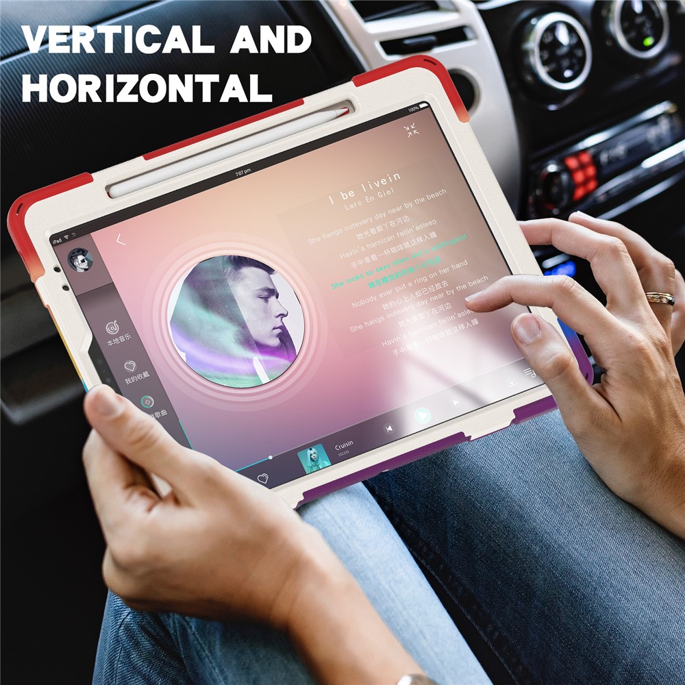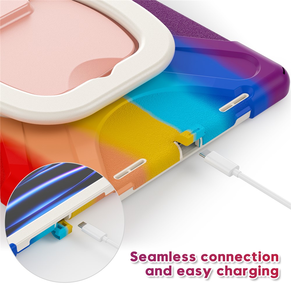 Integrated 360-degree rotary kickstand frees your hands for landscape or portrait viewing, also can be a hand-hold grip for portable carrying